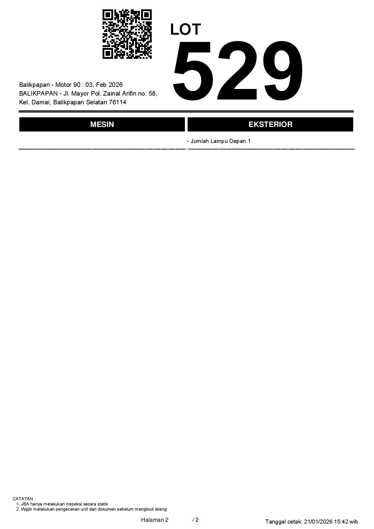 2. Peserta lelang wajib cek unit & dokumen