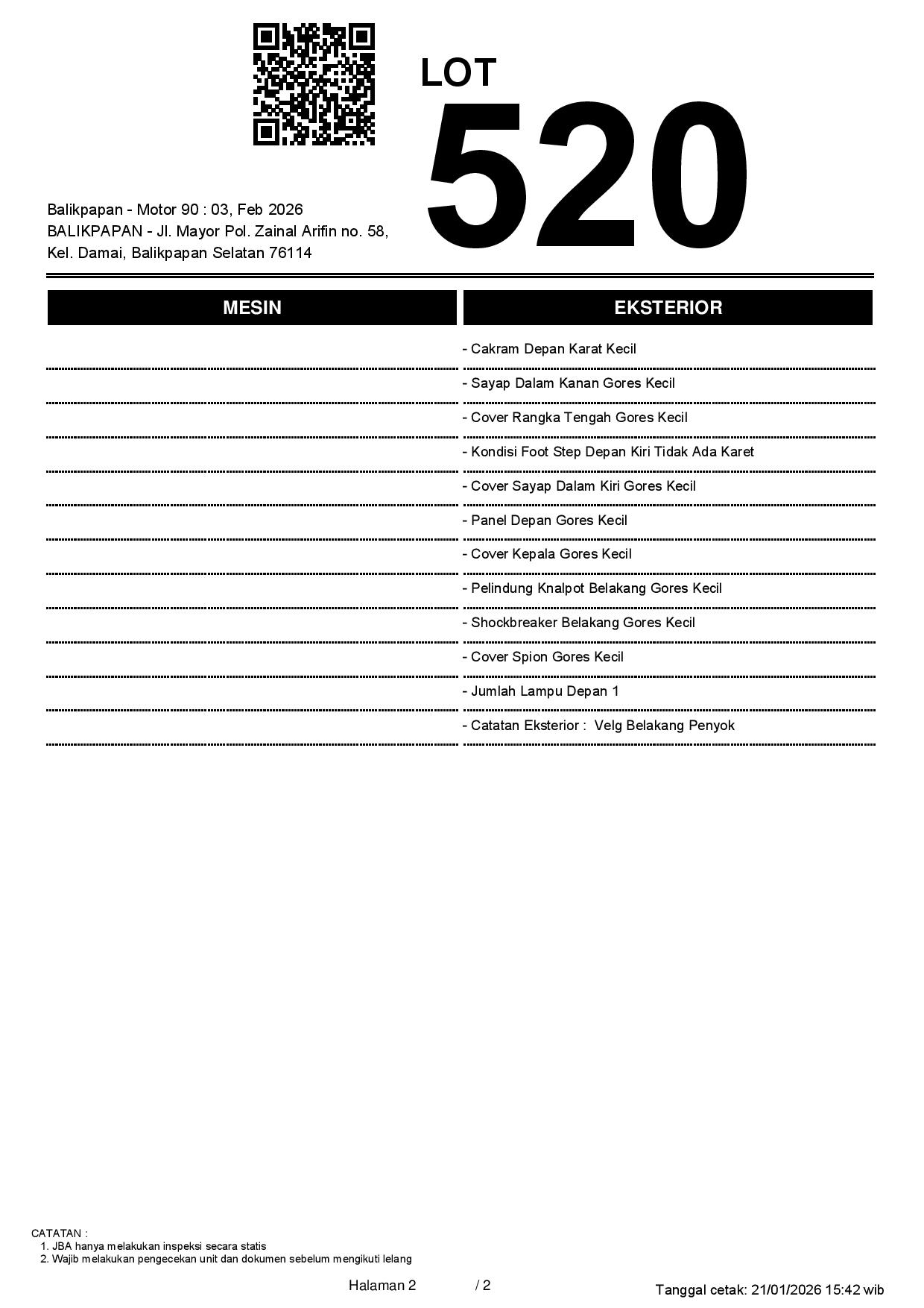 2. Peserta lelang wajib cek unit & dokumen