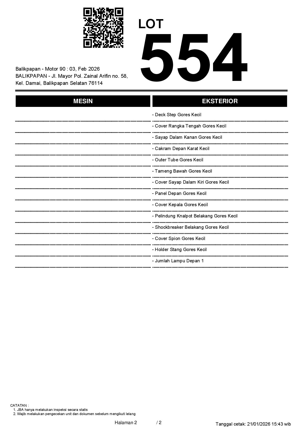 2. Peserta lelang wajib cek unit & dokumen