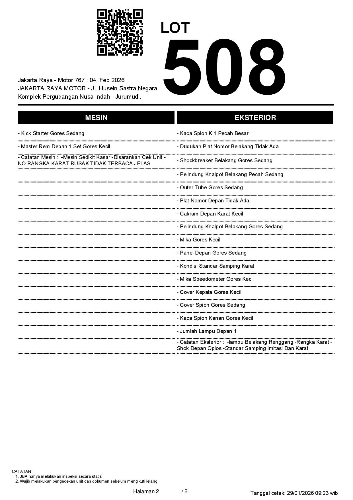 2. Peserta lelang wajib cek unit & dokumen