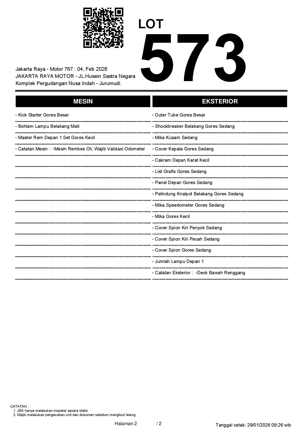1. Peserta lelang wajib cek unit & dokumen