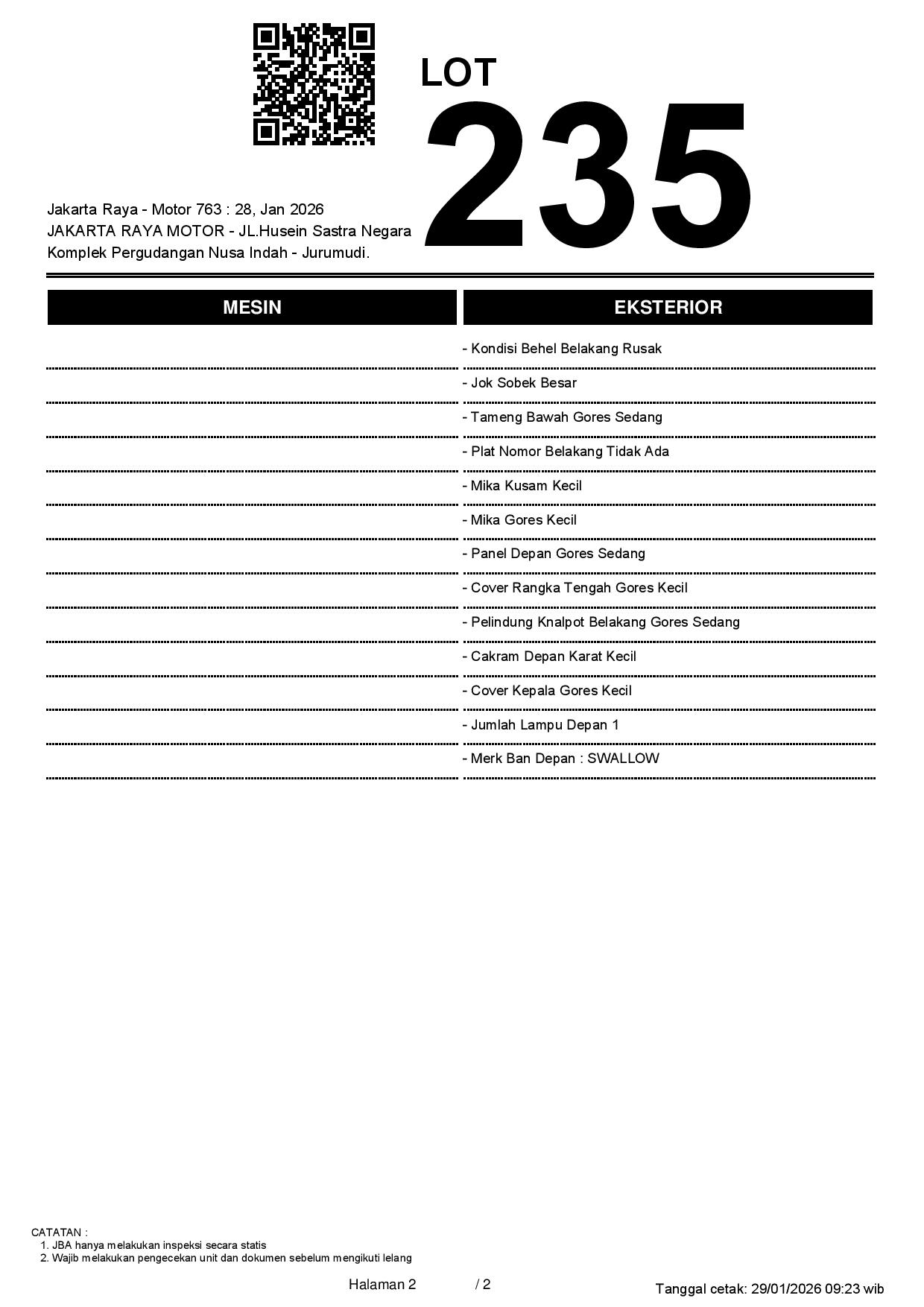 2. Peserta lelang wajib cek unit & dokumen
