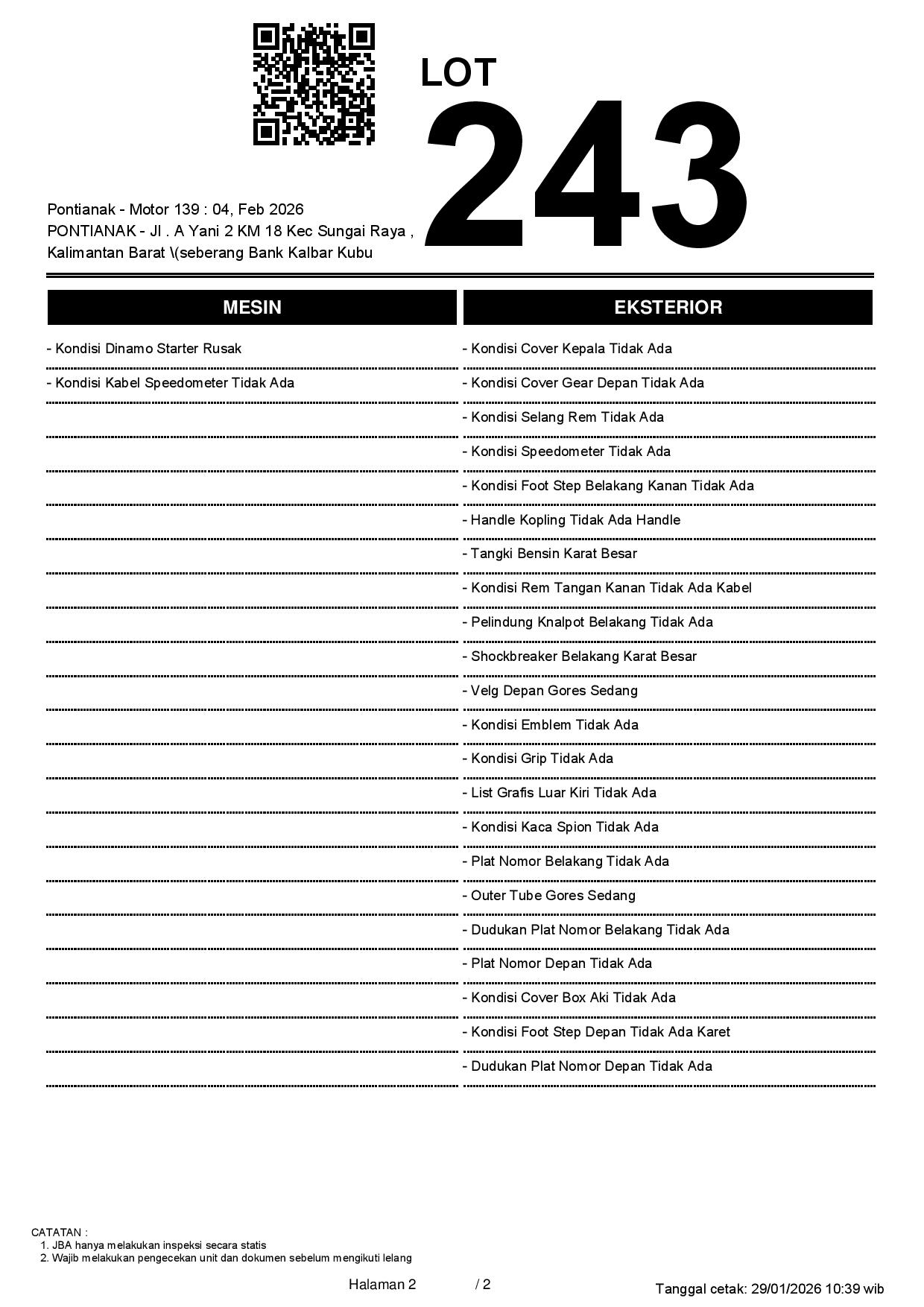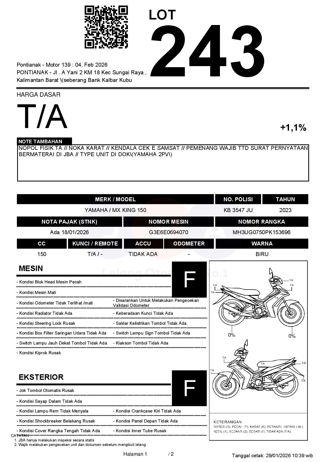 NOPOL FISIK TA // NOKA KARAT // KENDALA CEK E SAMSAT // PEMENANG WAJIB TTD SURAT PERNYATAAN BERMATERAI DI JBA // TYPE UNIT DI DOK(YAMAHA 2PV)