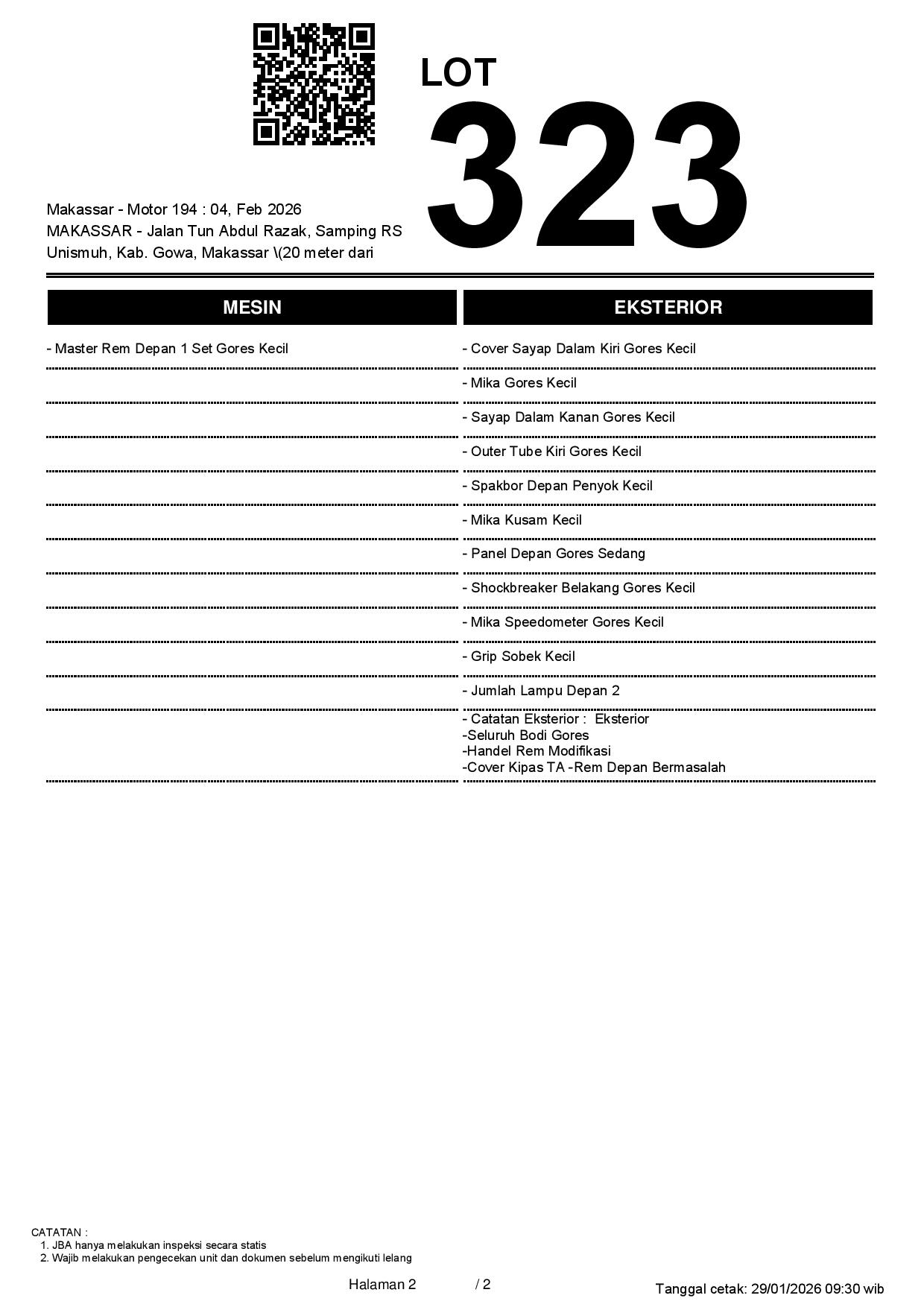 2. Peserta lelang wajib cek unit & dokumen
