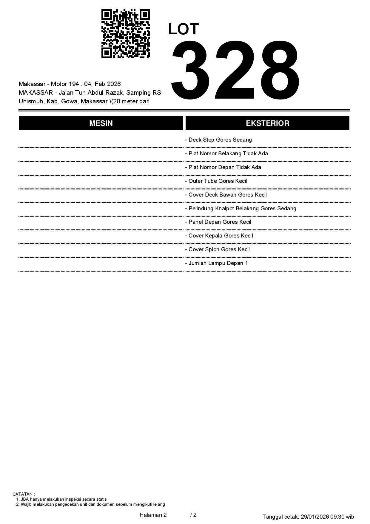 2. Peserta lelang wajib cek unit & dokumen