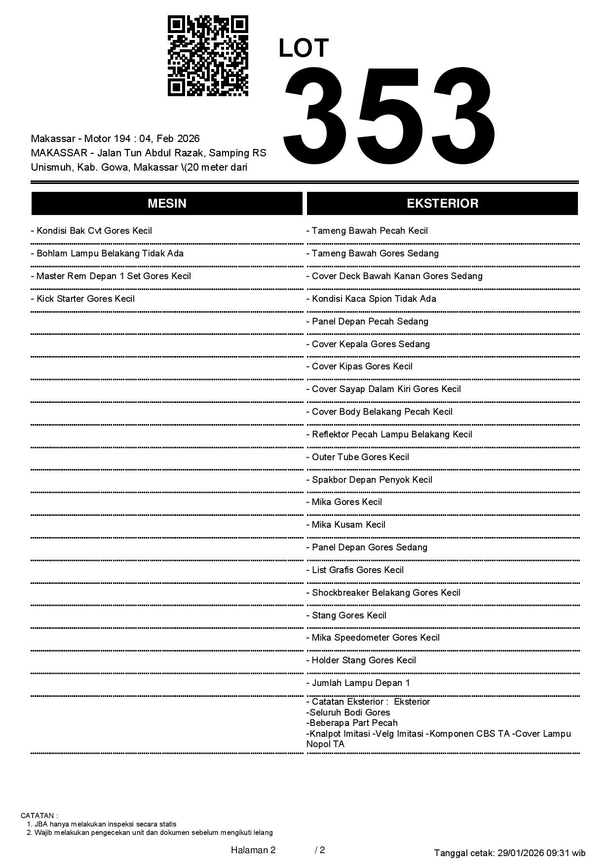 2. Peserta lelang wajib cek unit & dokumen