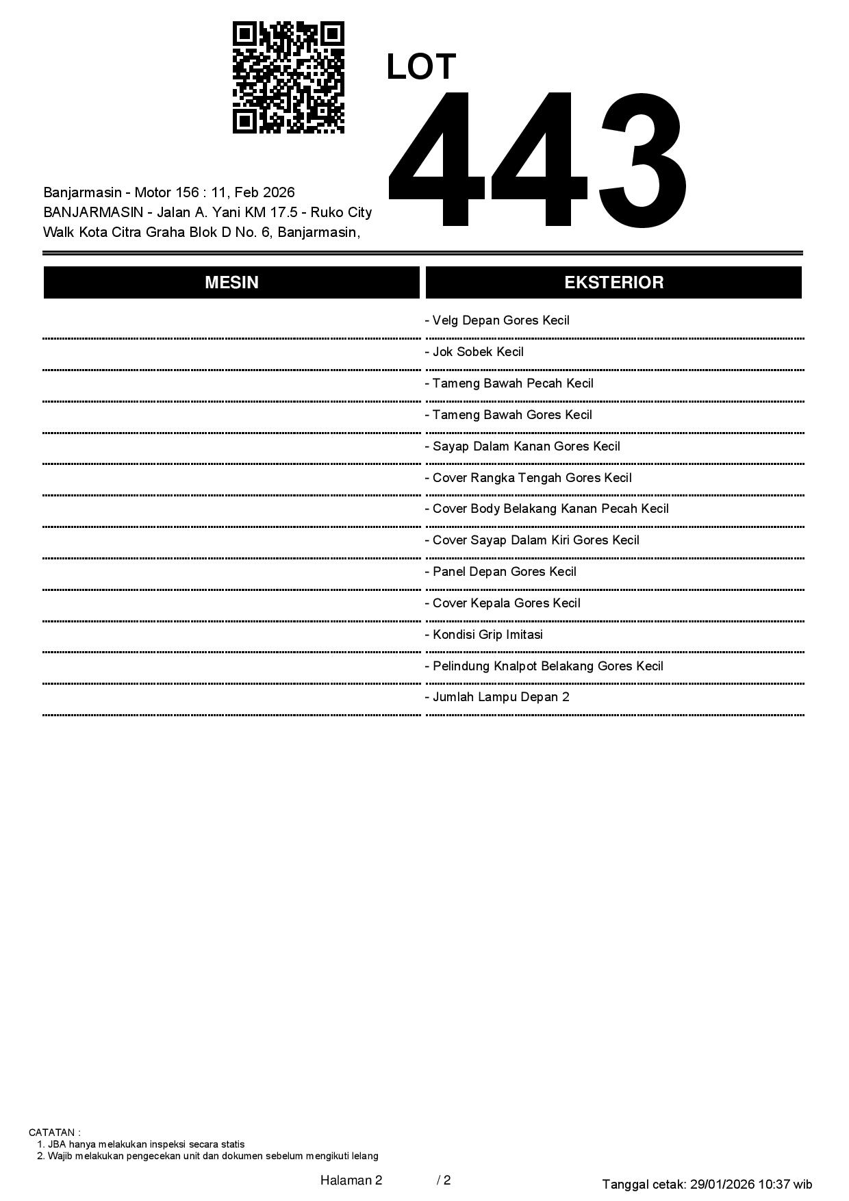 2. Peserta lelang wajib cek unit & dokumen
