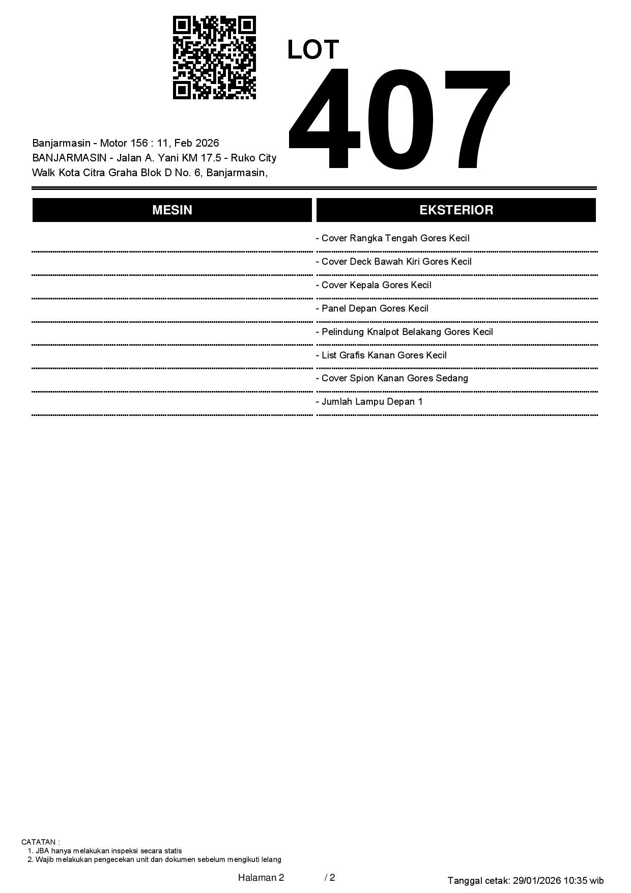 2. Peserta lelang wajib cek unit & dokumen