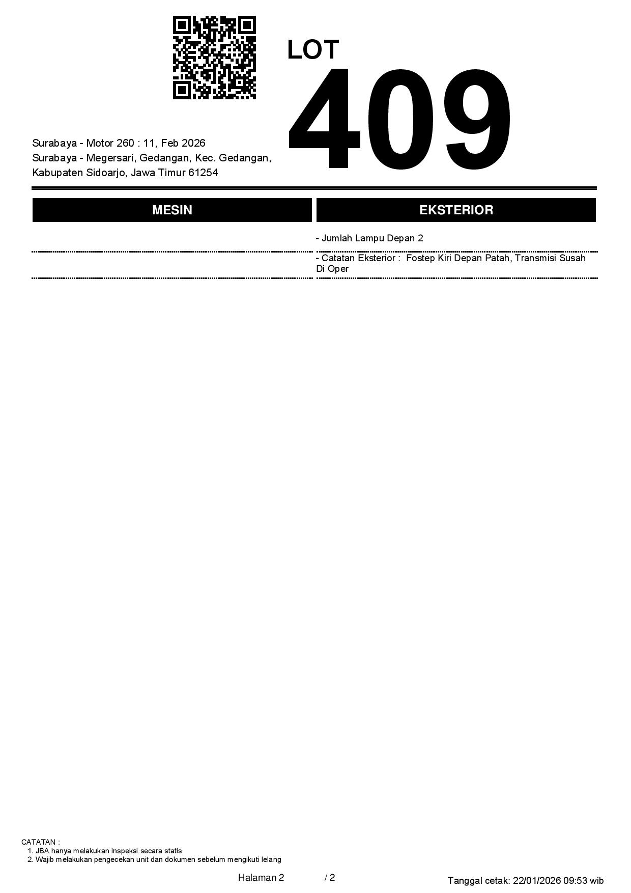 2. Peserta lelang wajib cek unit & dokumen
