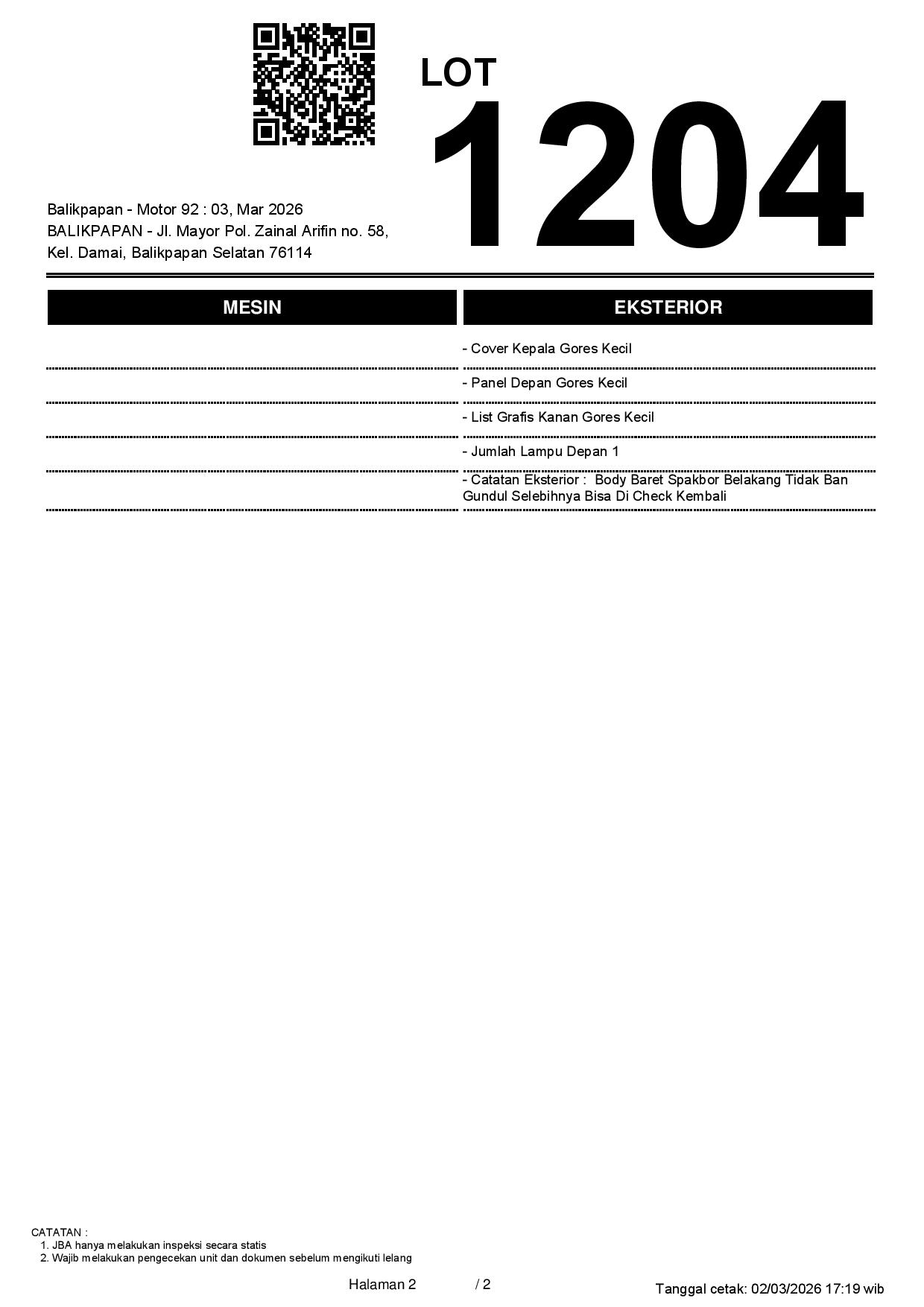 Tanggal Lelang: 03/03/2026 11:00 | WITA
