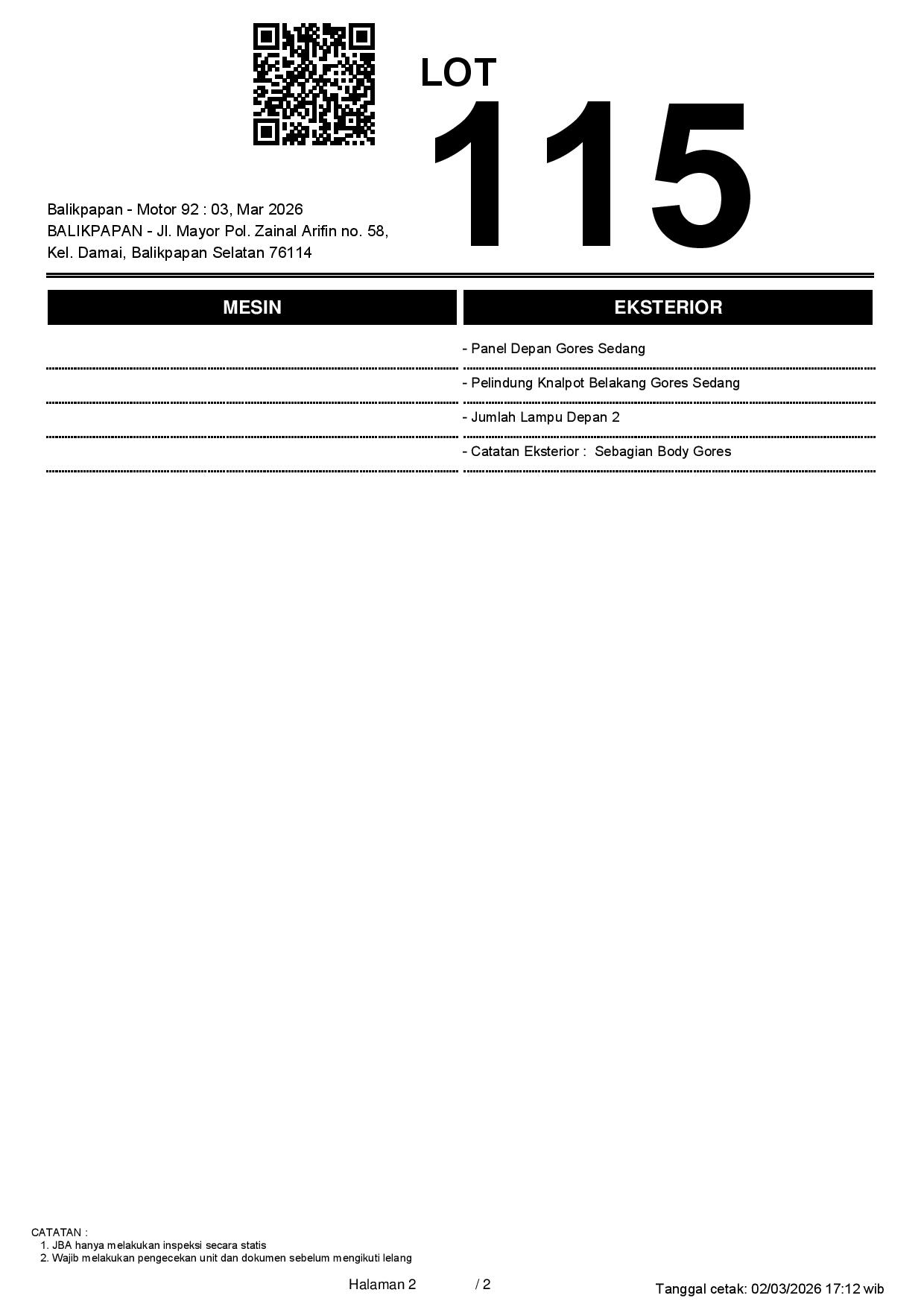Tanggal Lelang: 03/03/2026 11:00 | WITA