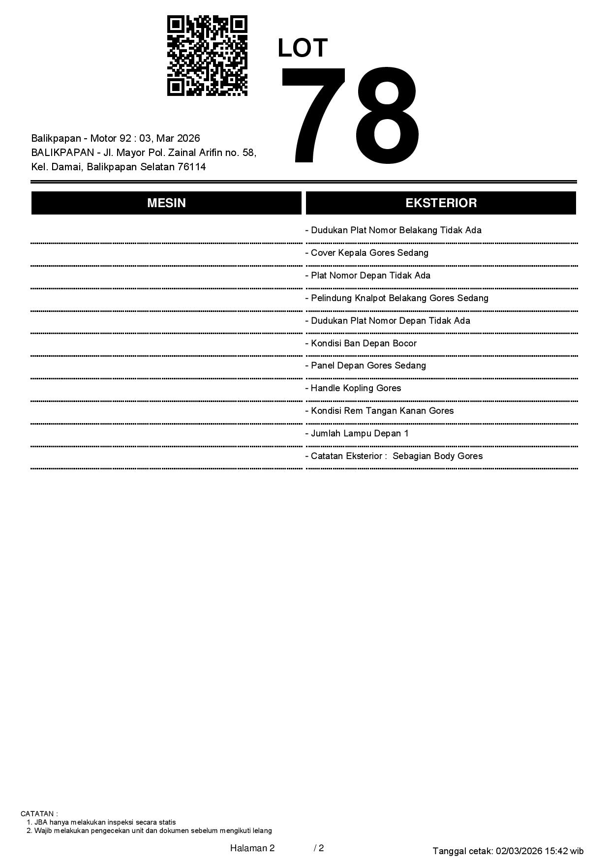 2. Peserta lelang wajib cek unit & dokumen