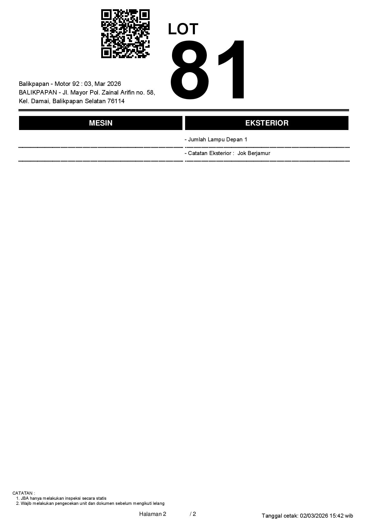 2. Peserta lelang wajib cek unit & dokumen