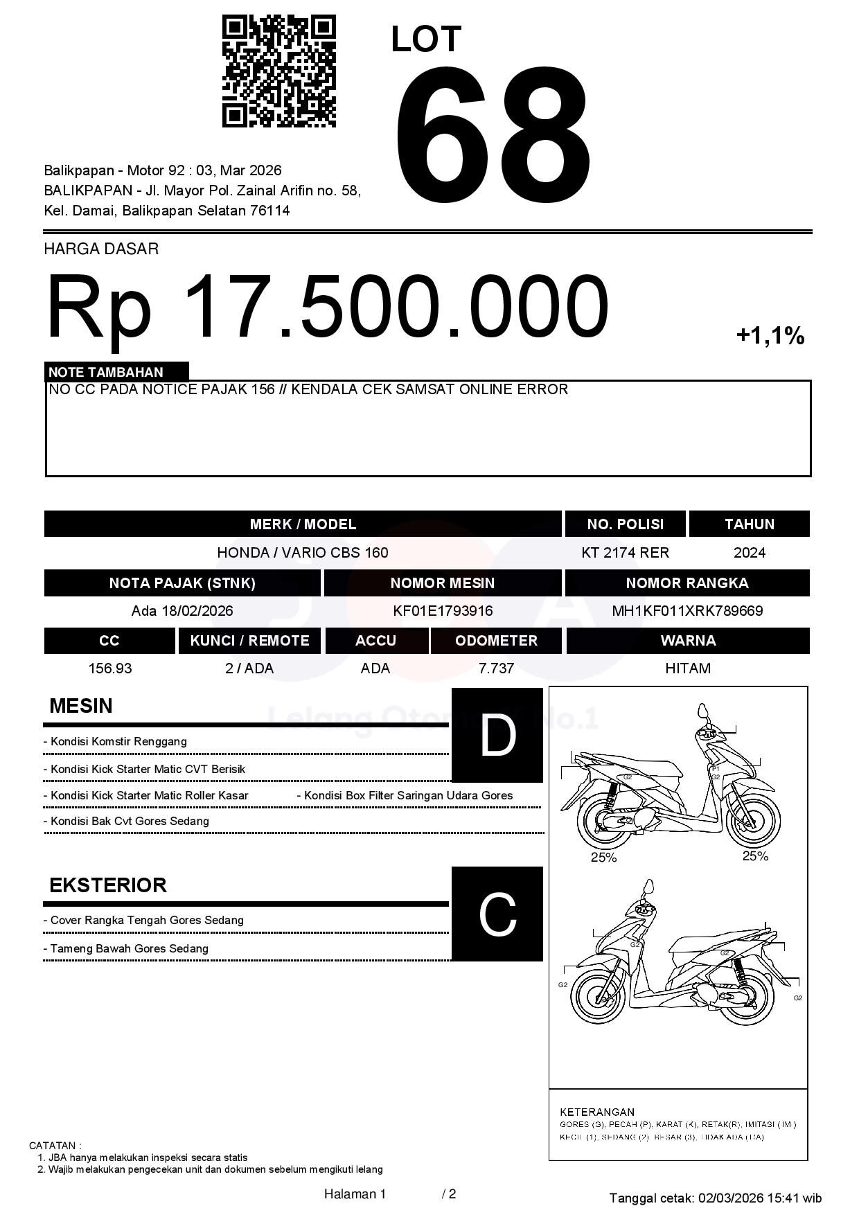 Tanggal Lelang: 03/03/2026 11:00 | WITA