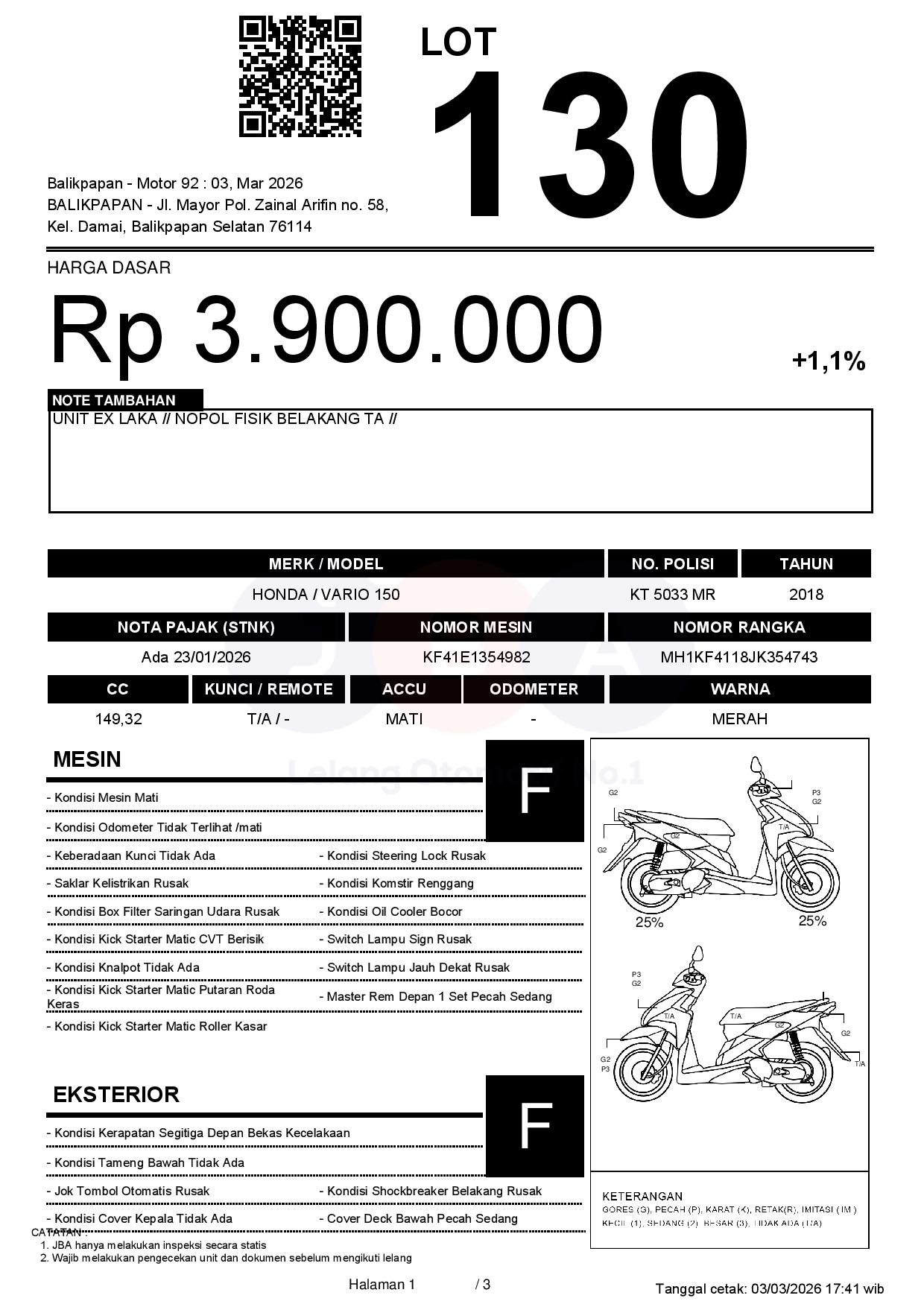 Tanggal Lelang: 03/03/2026 11:00 | WITA