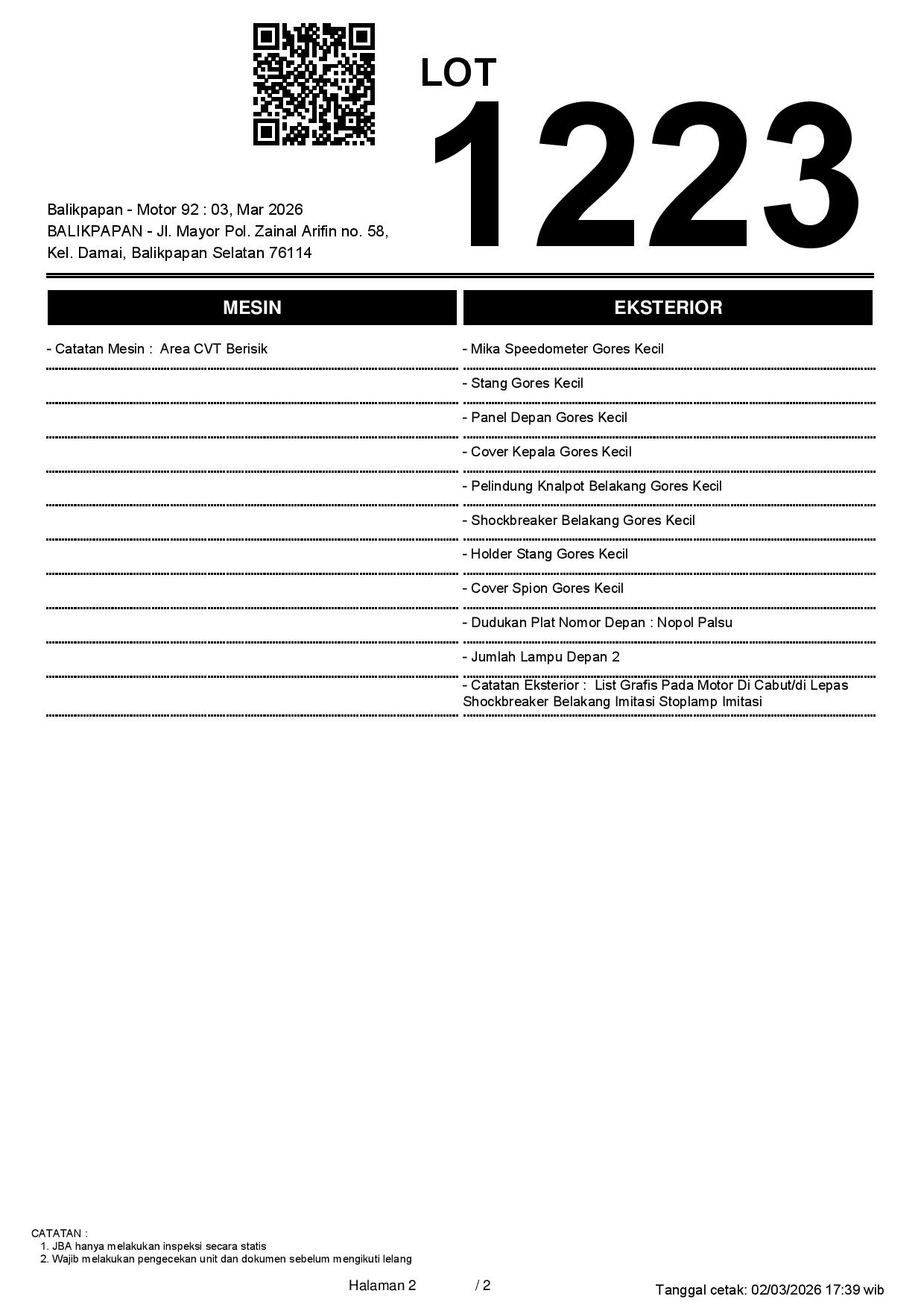 2. Peserta lelang wajib cek unit & dokumen