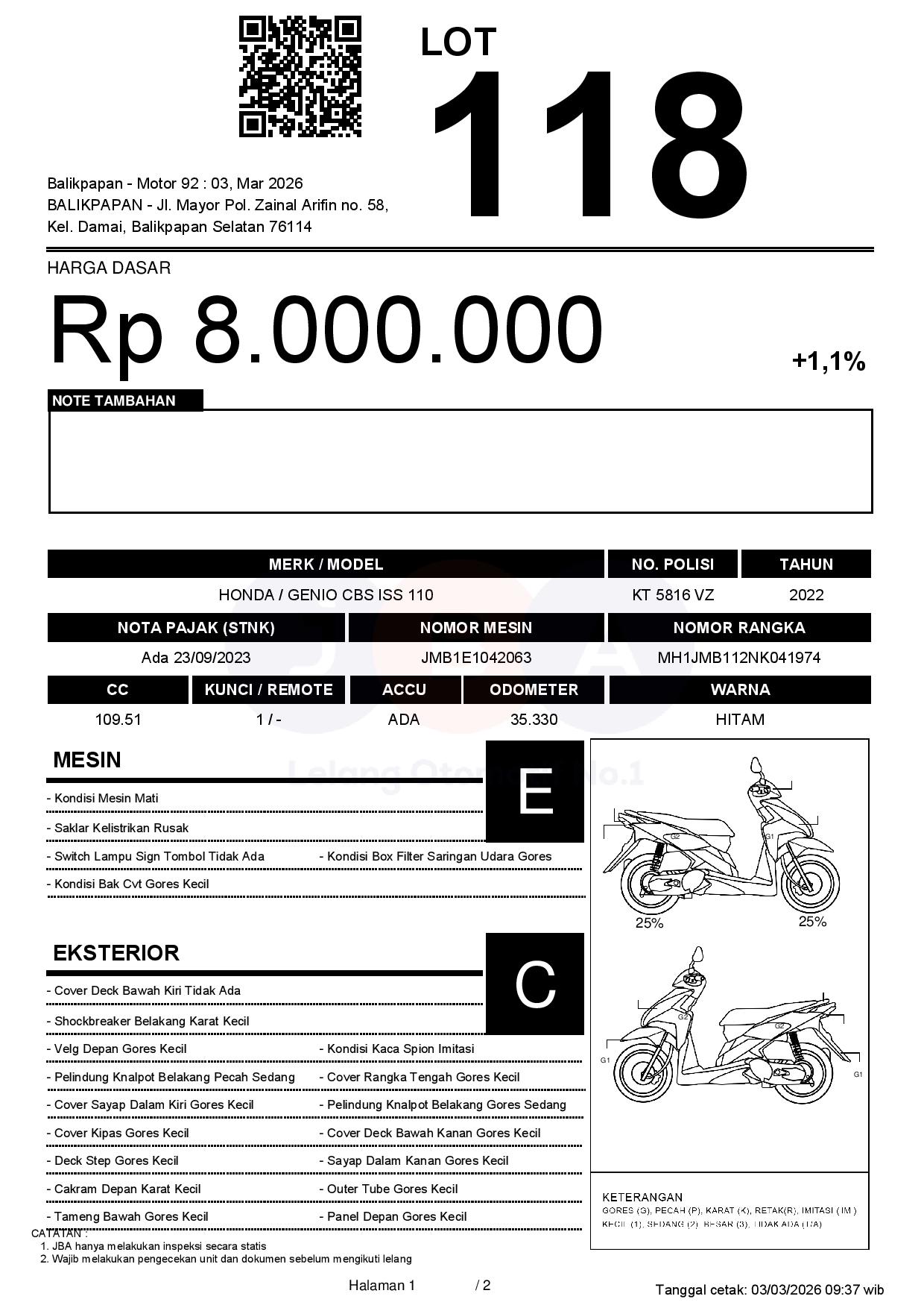 Tanggal Lelang: 03/03/2026 11:00 | WITA