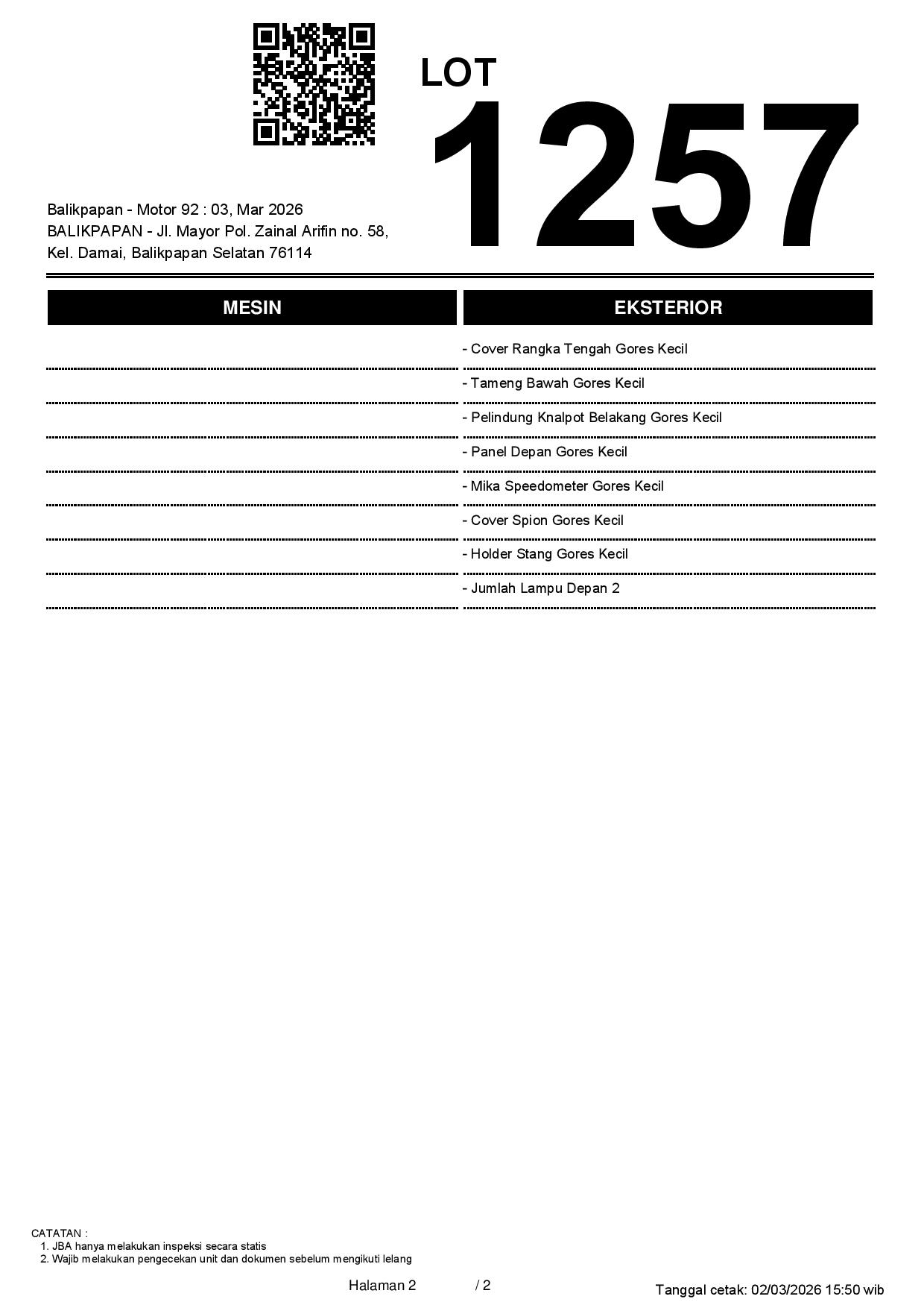 2. Peserta lelang wajib cek unit & dokumen