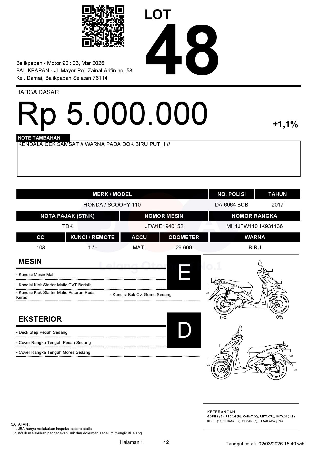 Tanggal Lelang: 03/03/2026 11:00 | WITA