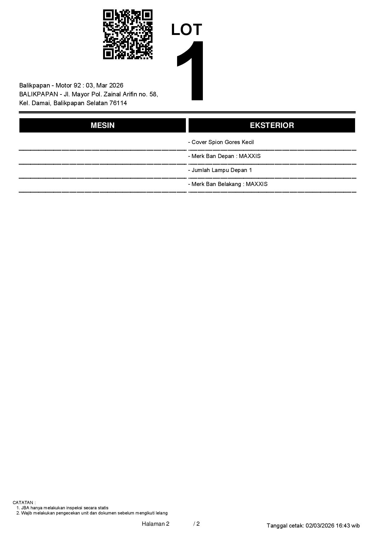 Tanggal Lelang: 03/03/2026 11:00 | WITA