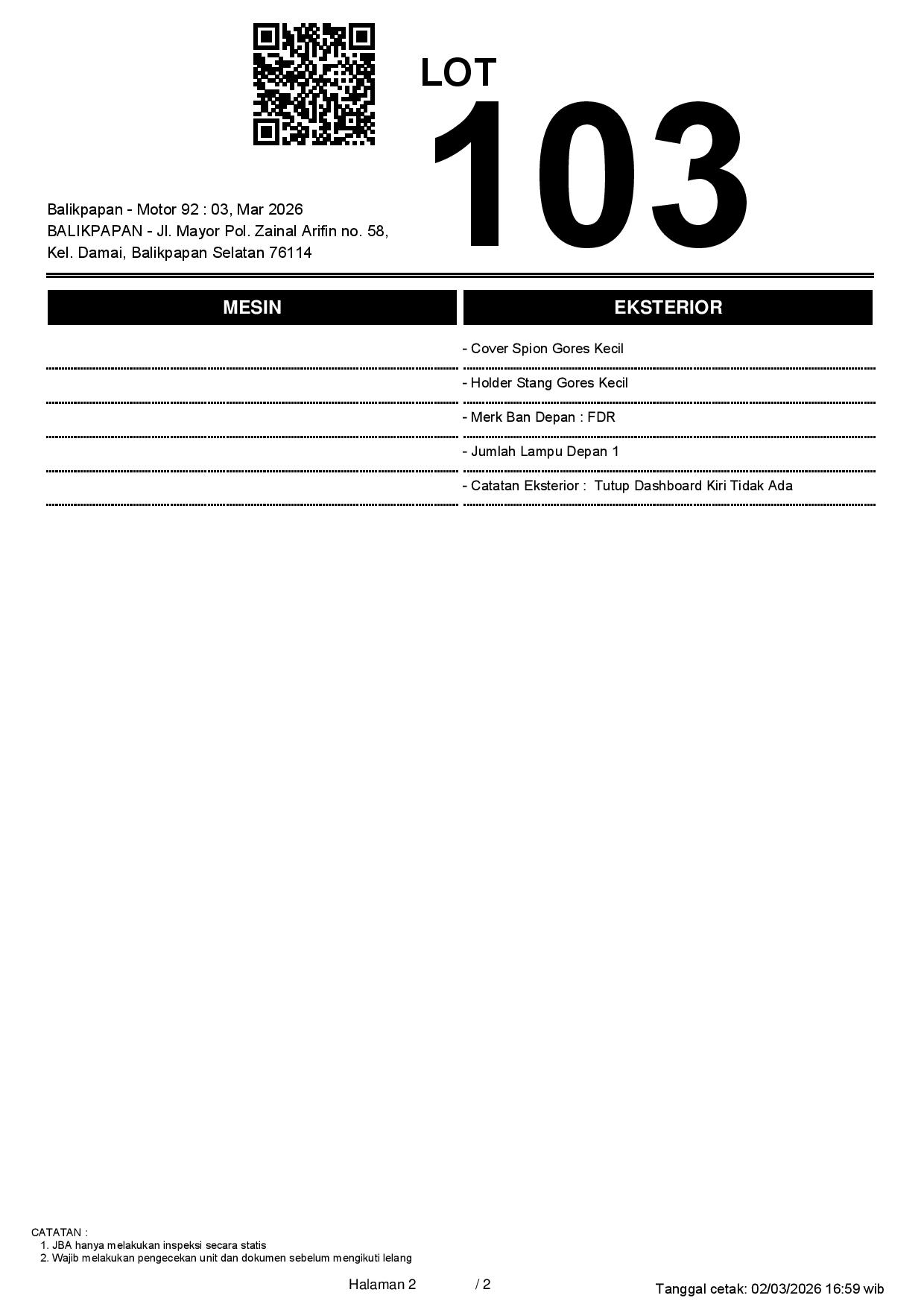 2. Peserta lelang wajib cek unit & dokumen