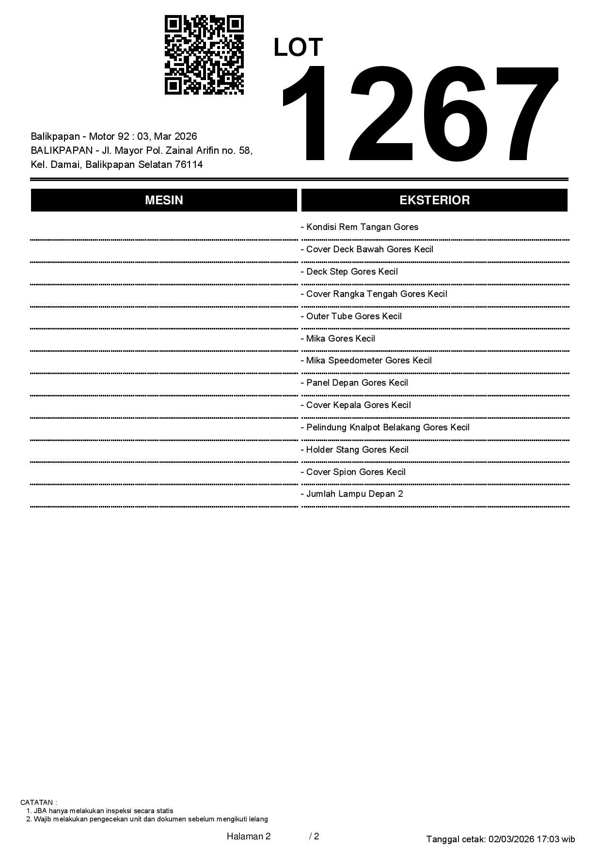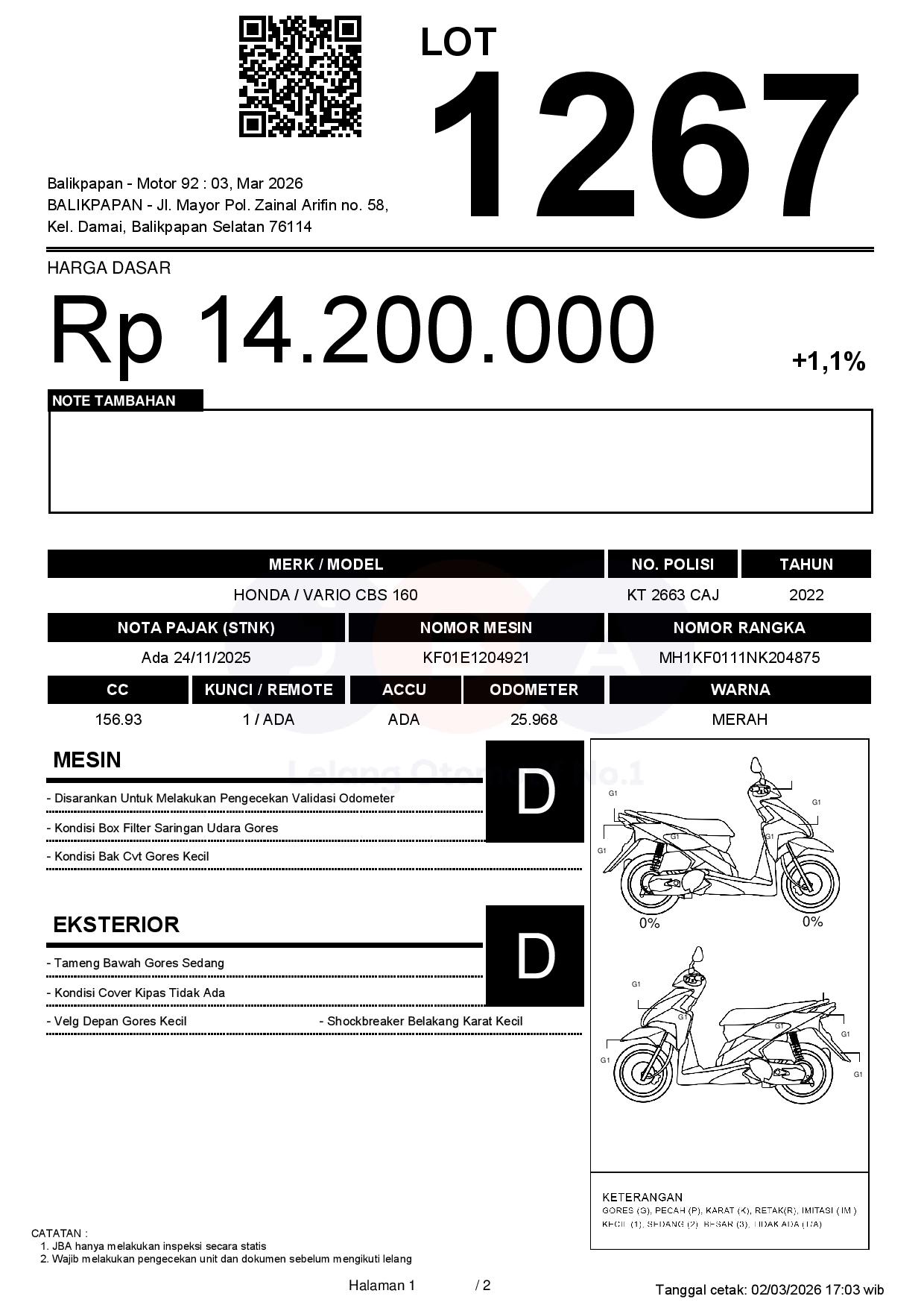 Tanggal Lelang: 03/03/2026 11:00 | WITA