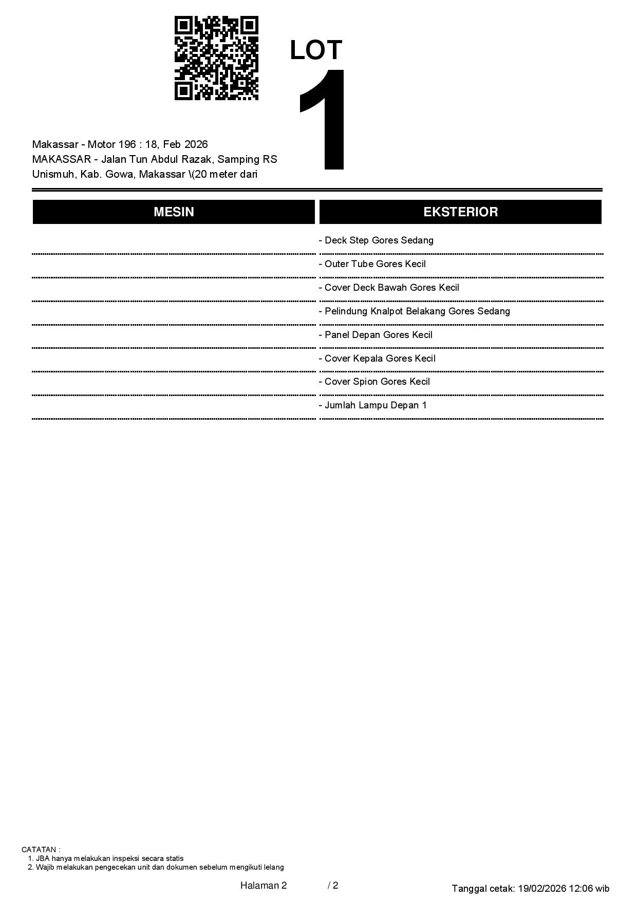 2. Peserta lelang wajib cek unit & dokumen