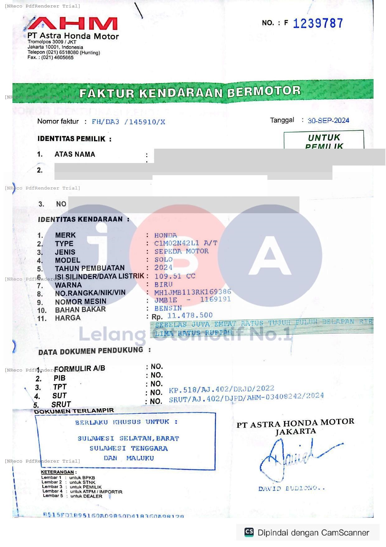 Nomor Rangka