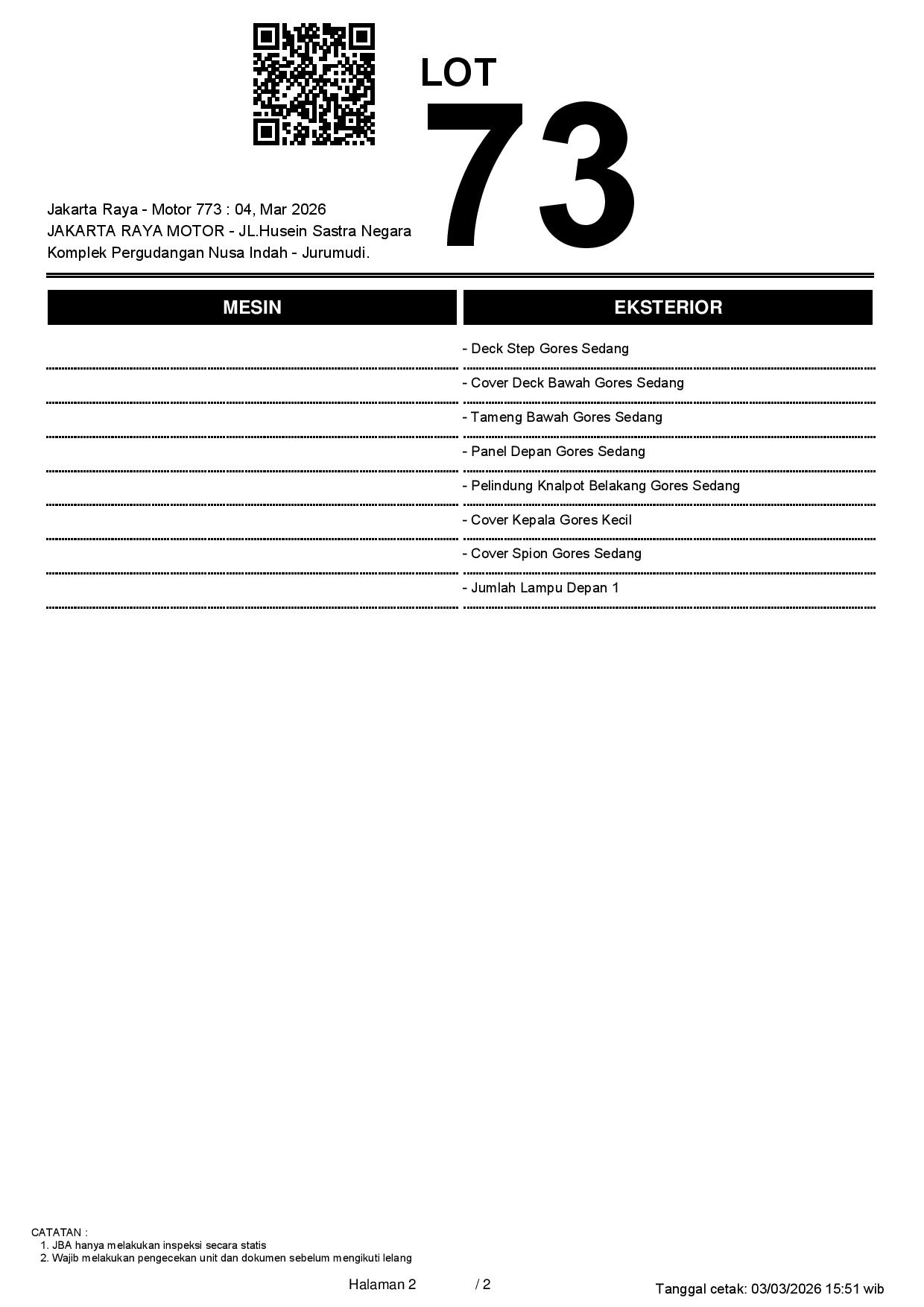 1. Peserta lelang wajib cek unit & dokumen
