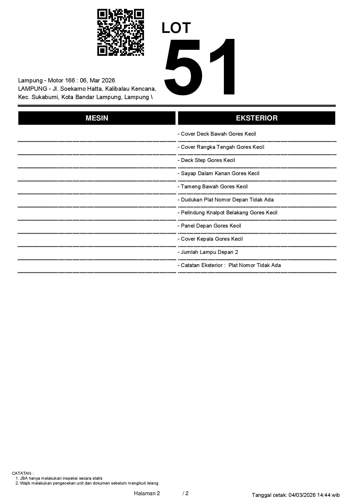 Tanggal Lelang: 06/03/2026 13.5:00 | WIB