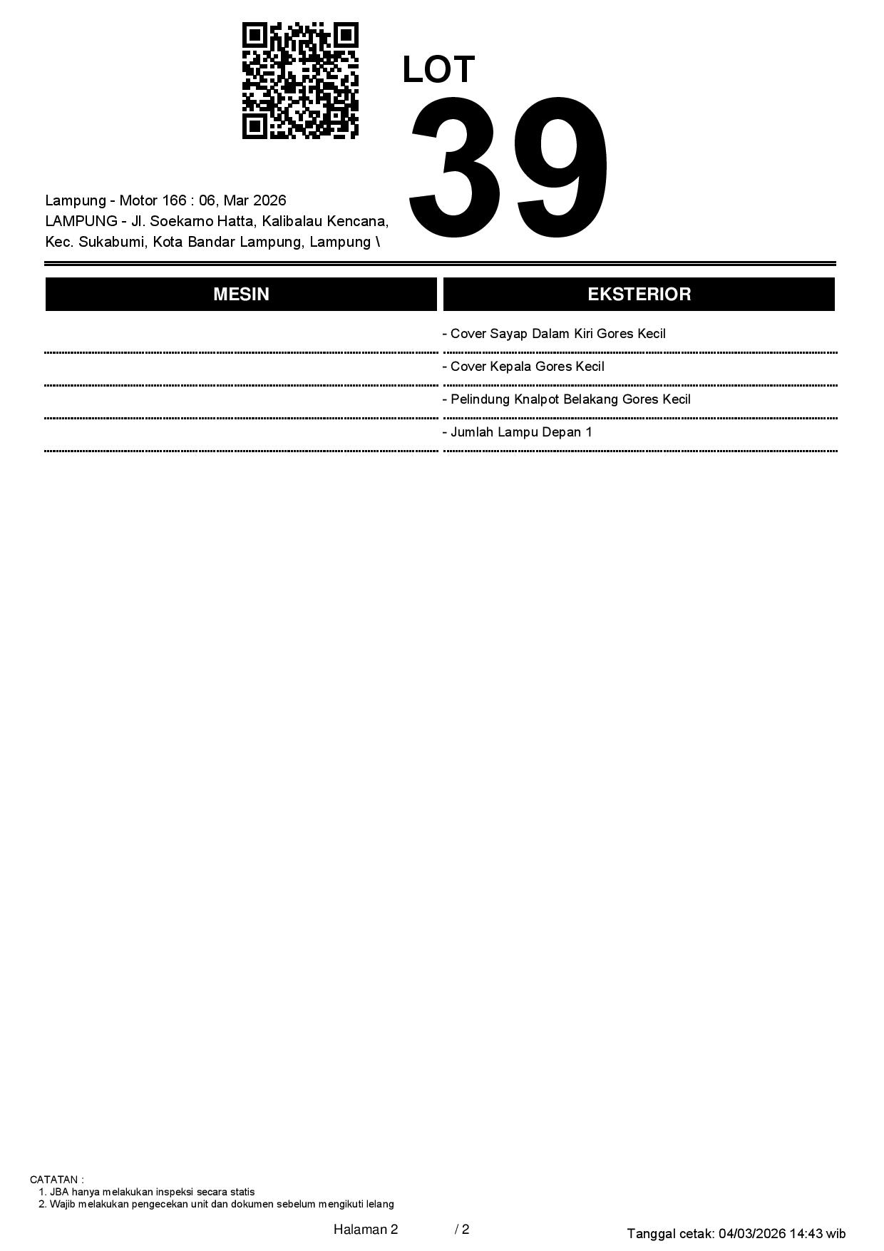 Tanggal Lelang: 06/03/2026 13.5:00 | WIB