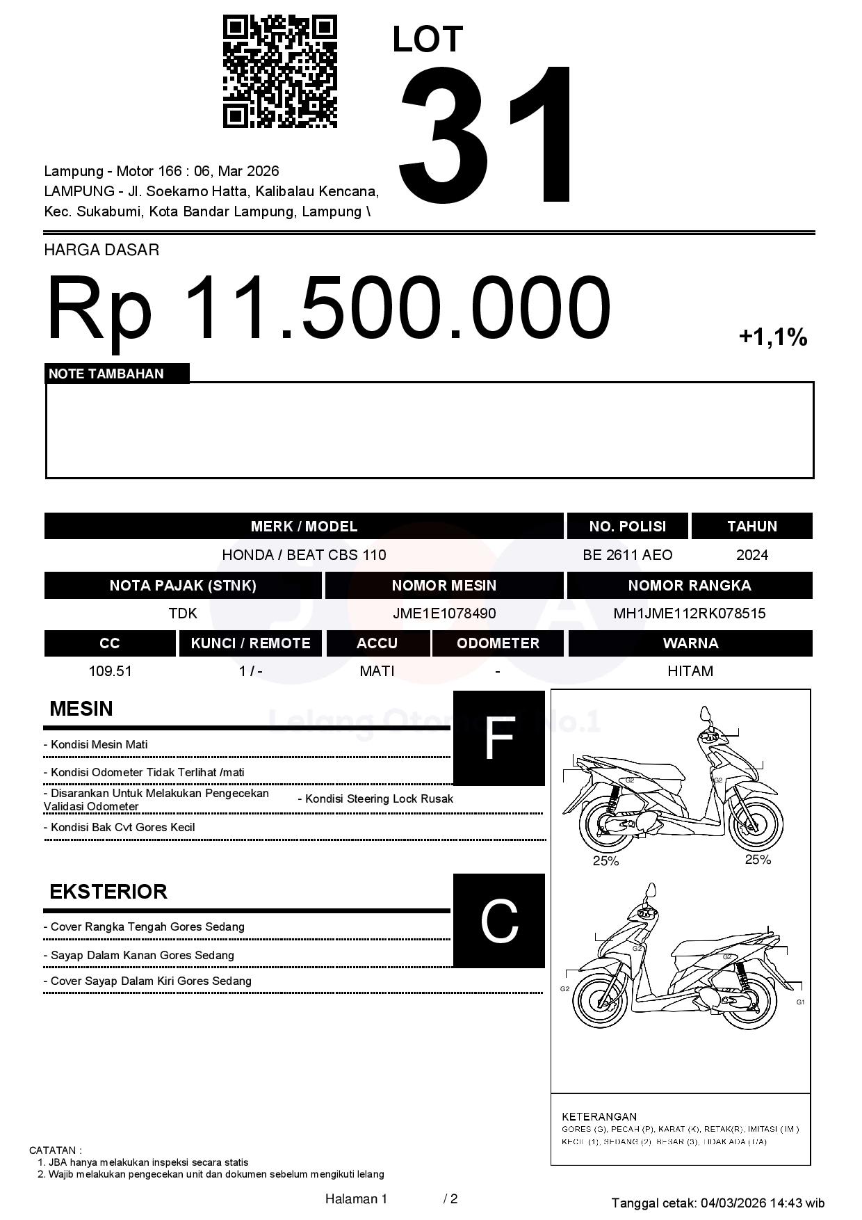 Tanggal Lelang: 06/03/2026 13.5:00 | WIB