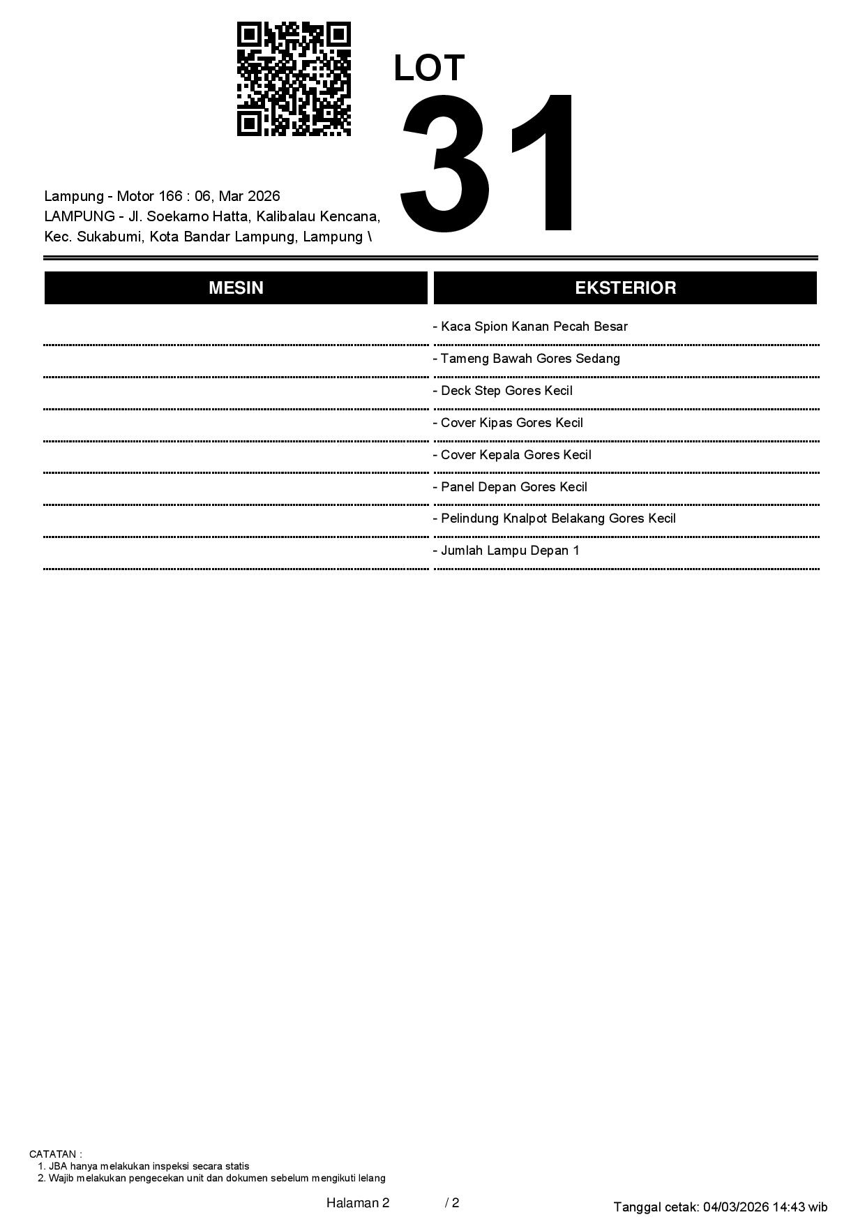 2. Peserta lelang wajib cek unit & dokumen