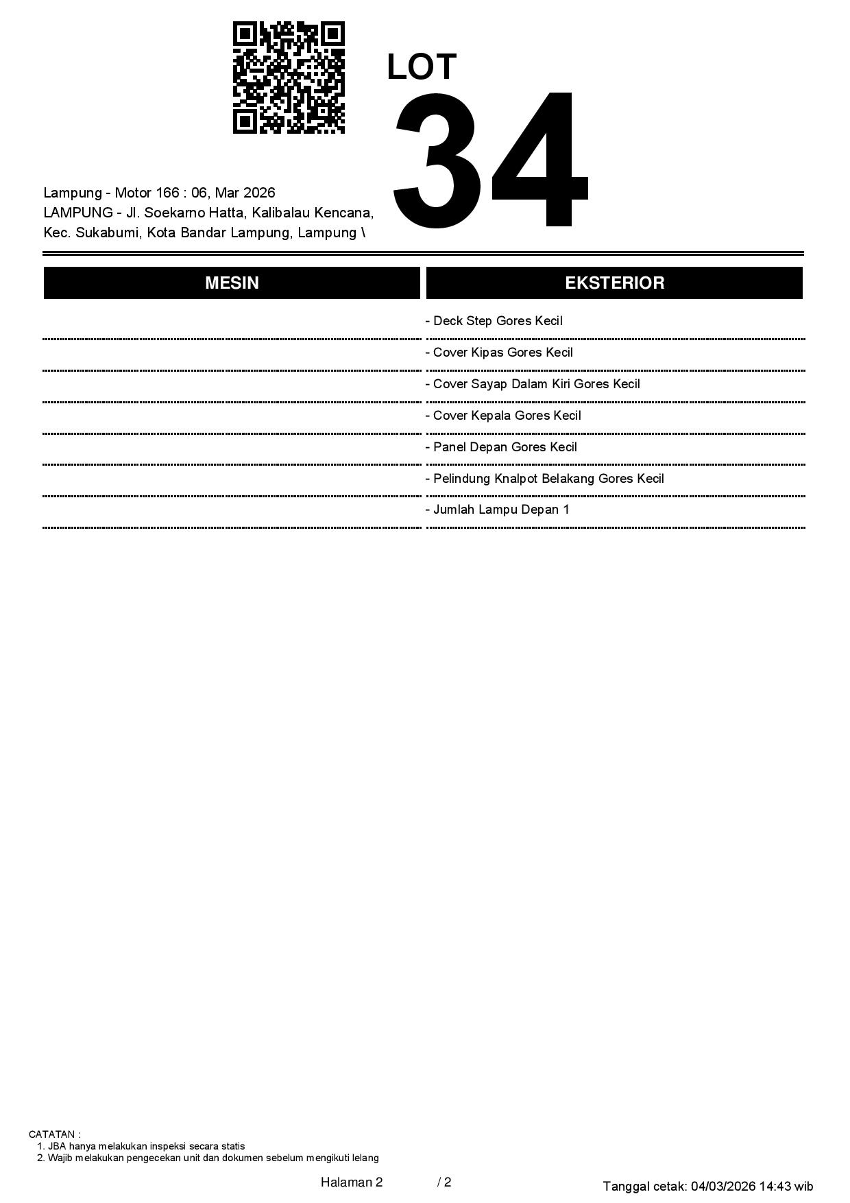 Tanggal Lelang: 06/03/2026 13.5:00 | WIB