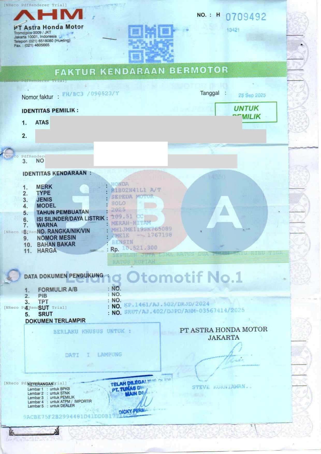 Nomor Rangka