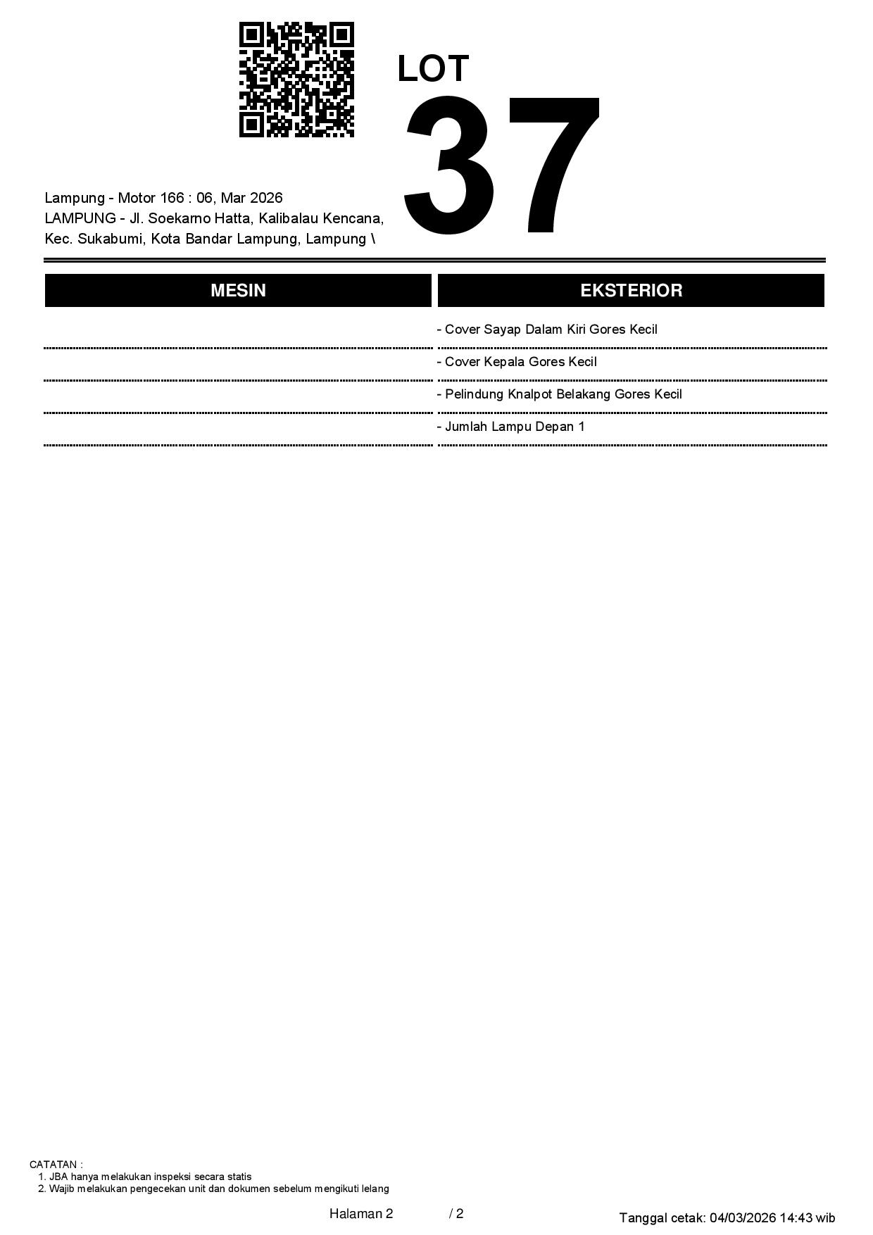 Tanggal Lelang: 06/03/2026 13.5:00 | WIB