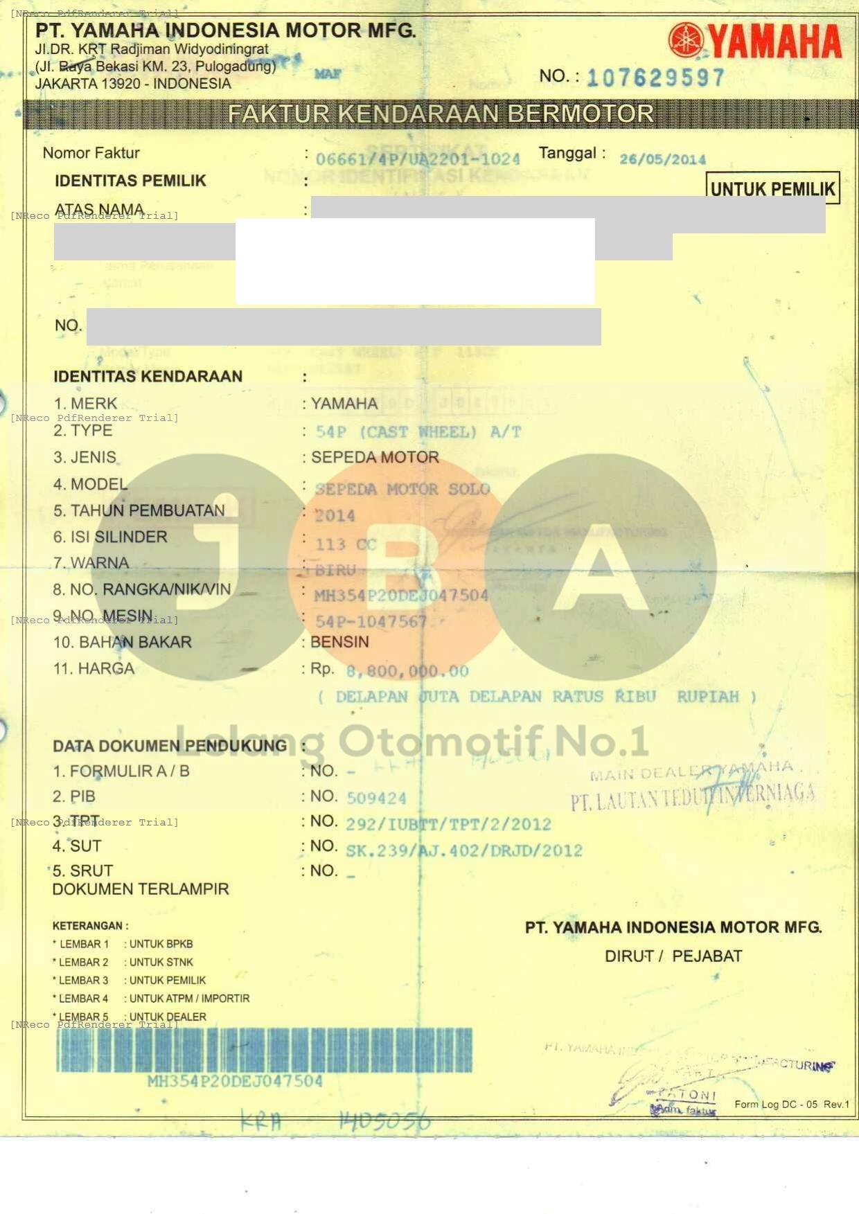 Nomor Mesin