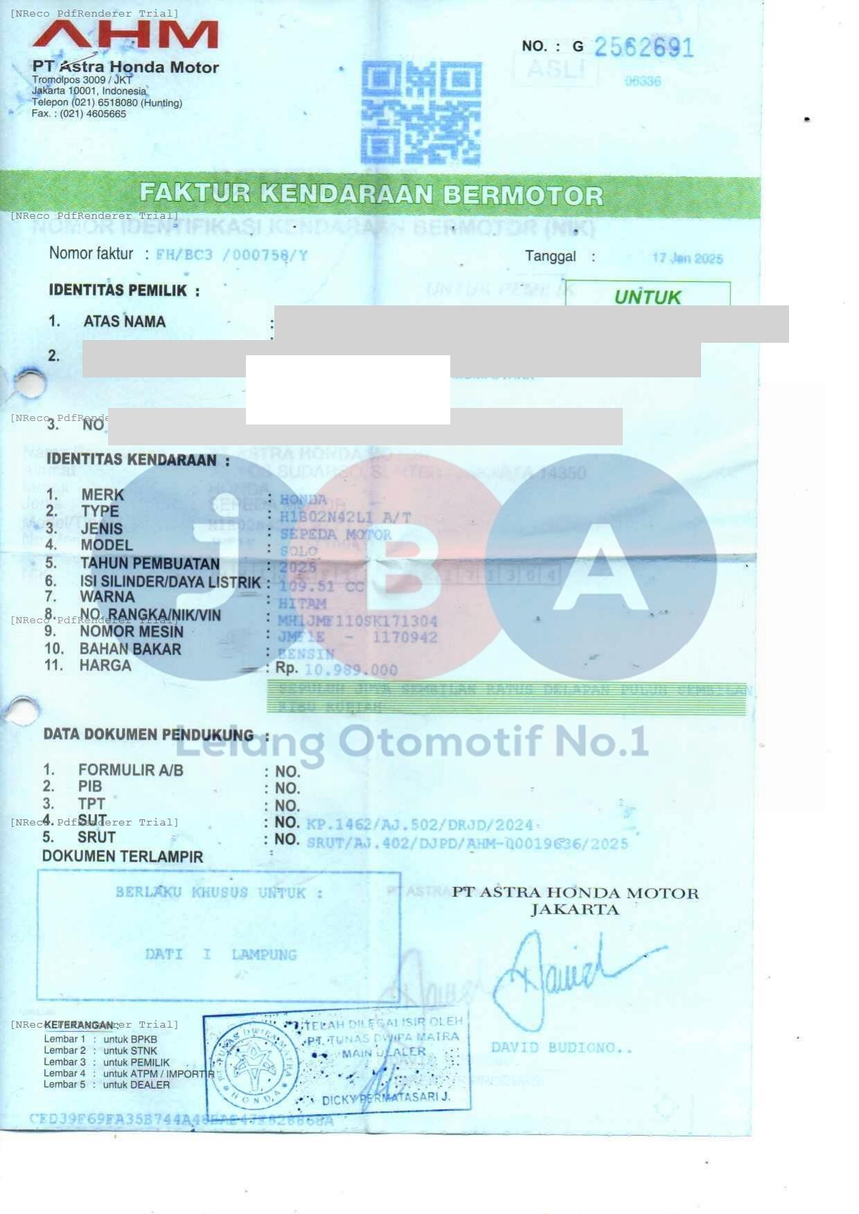 Nomor Rangka