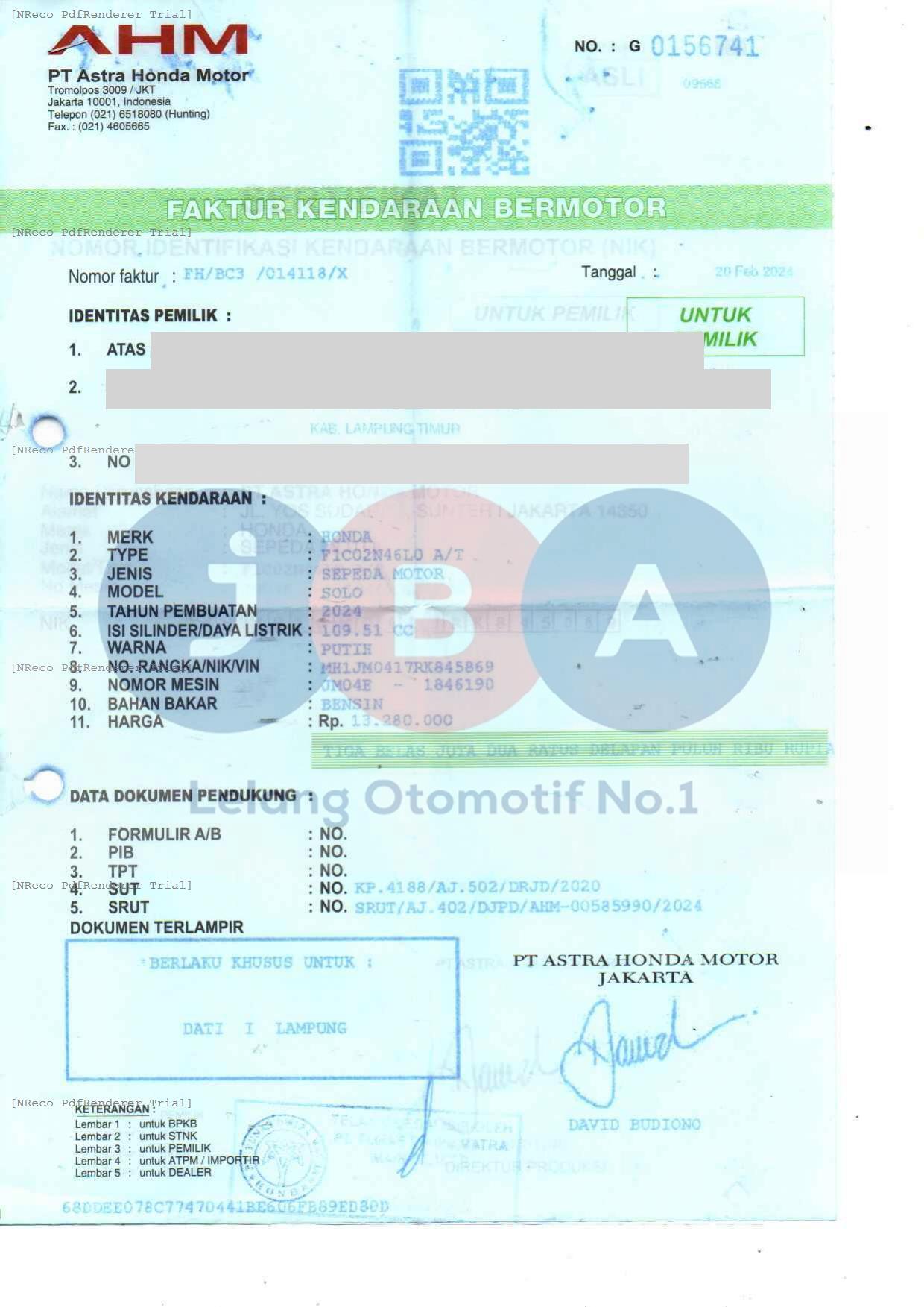 Nomor Rangka