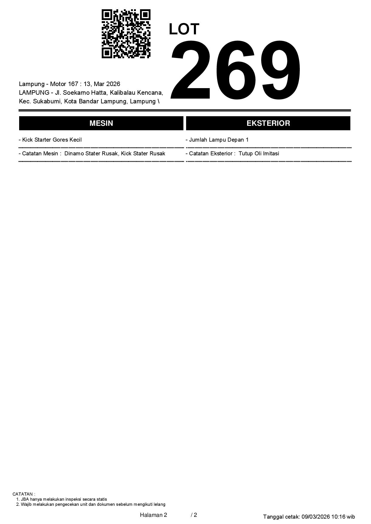 2. Peserta lelang wajib cek unit & dokumen