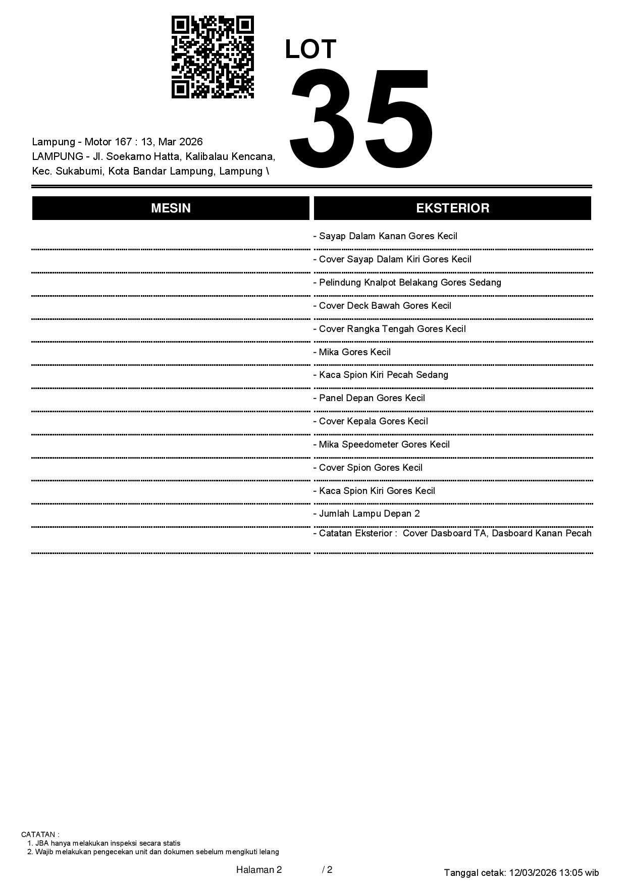 Tanggal Lelang: 13/03/2026 13.5:00 | WIB