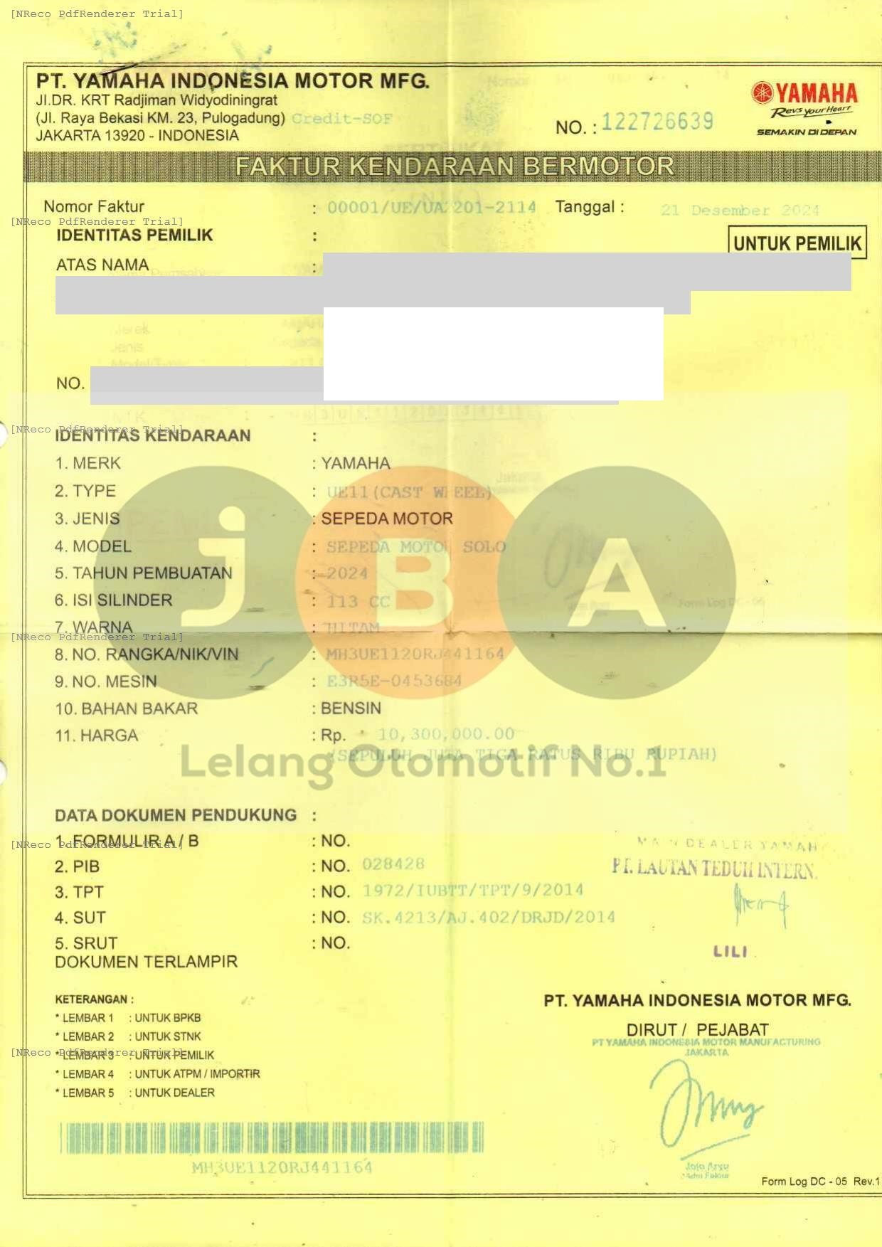 Nomor Rangka