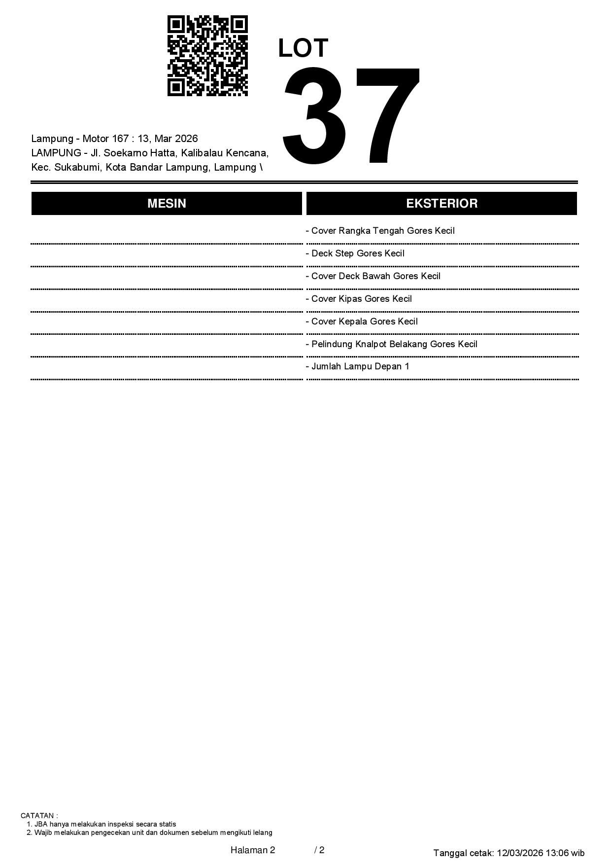 Tanggal Lelang: 13/03/2026 13.5:00 | WIB