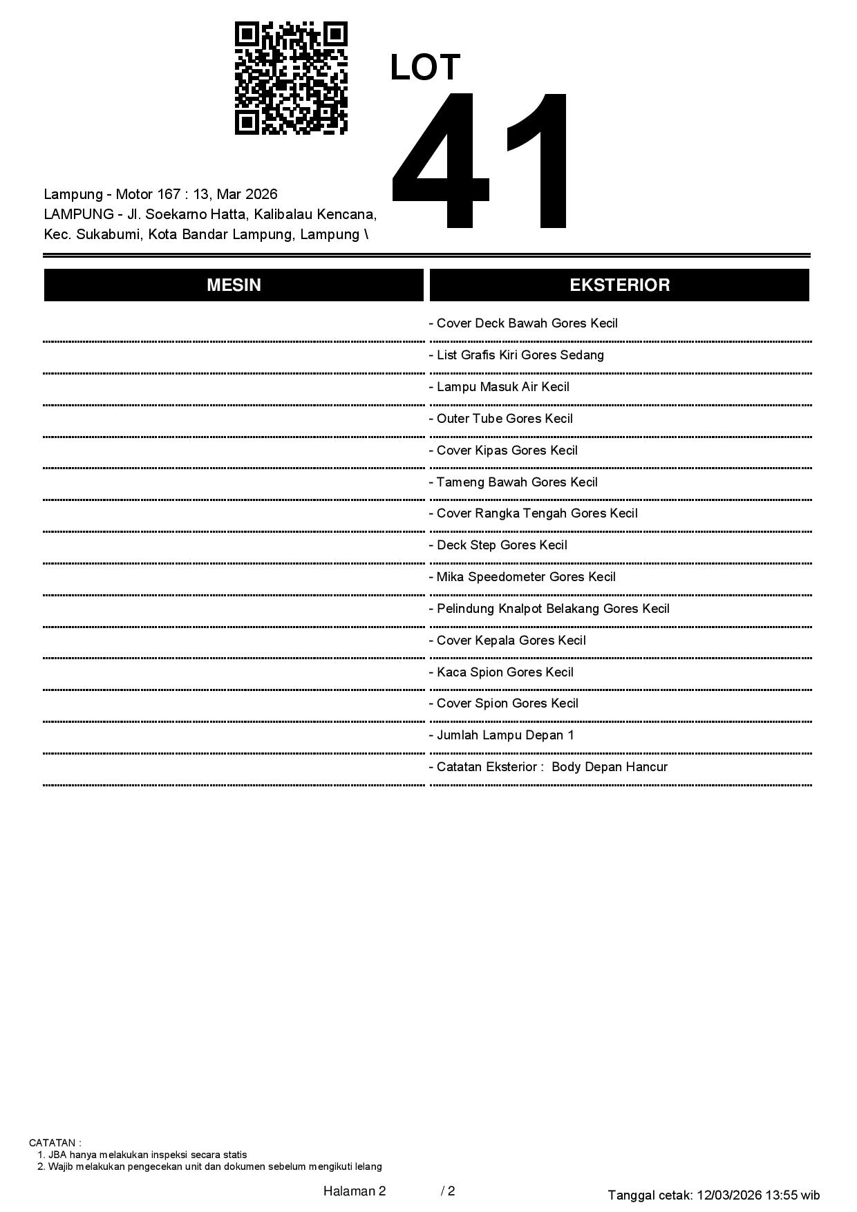 Tanggal Lelang: 13/03/2026 13.5:00 | WIB