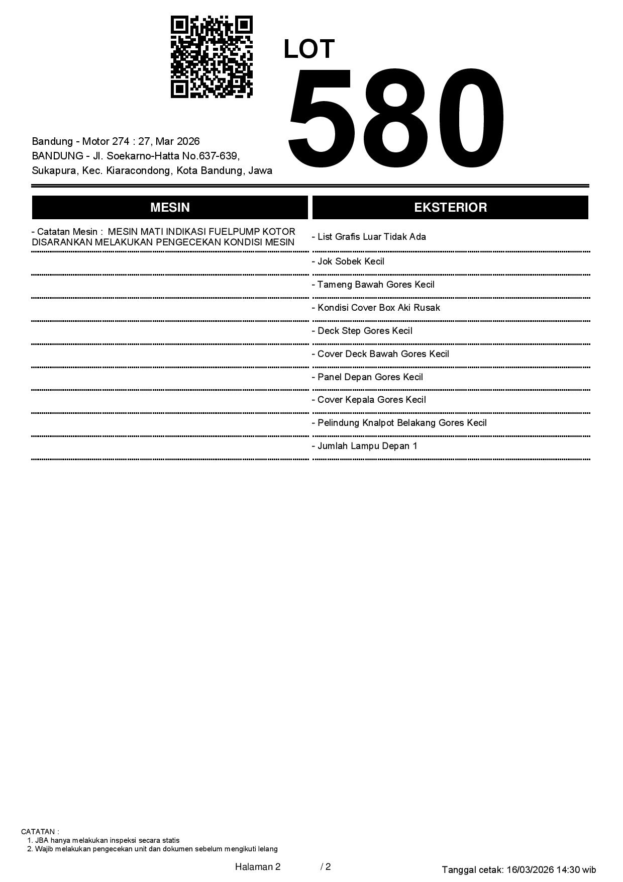 1. Peserta lelang wajib cek unit & dokumen