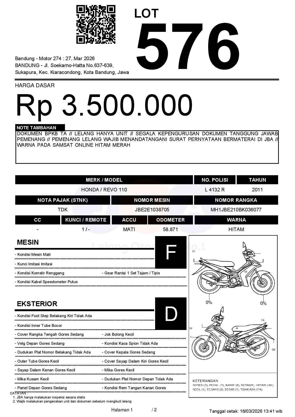 DOKUMEN BPKB TA // LELANG HANYA UNIT // SEGALA KEPENGURUSAN DOKUMEN TANGGUNG JAWAB PEMENANG // PEMENANG LELANG WAJIB MENANDATANGANI SURAT PERNYATAAN BERMATERAI DI JBA // WARNA PADA SAMSAT ONLINE HITAM MERAH