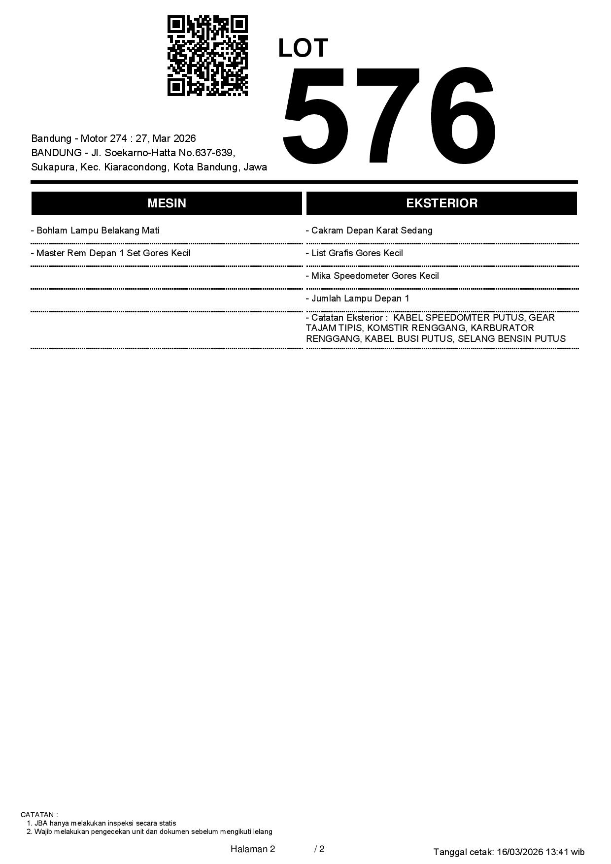 1. Peserta lelang wajib cek unit & dokumen
