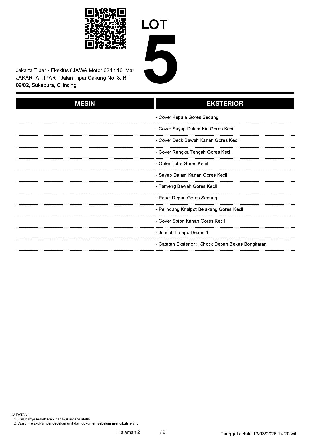 2. Peserta lelang wajib cek unit & dokumen