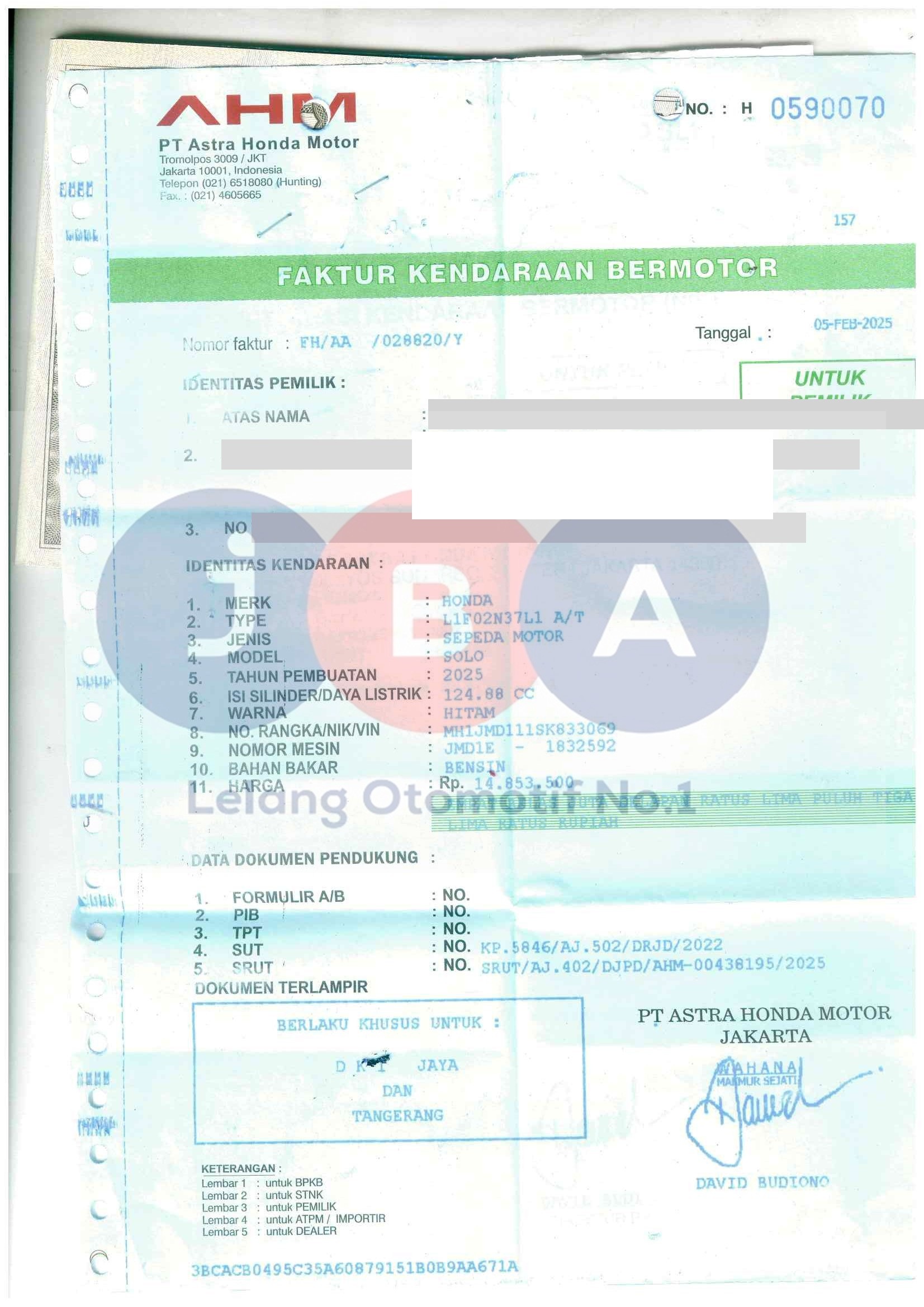 Nomor Rangka