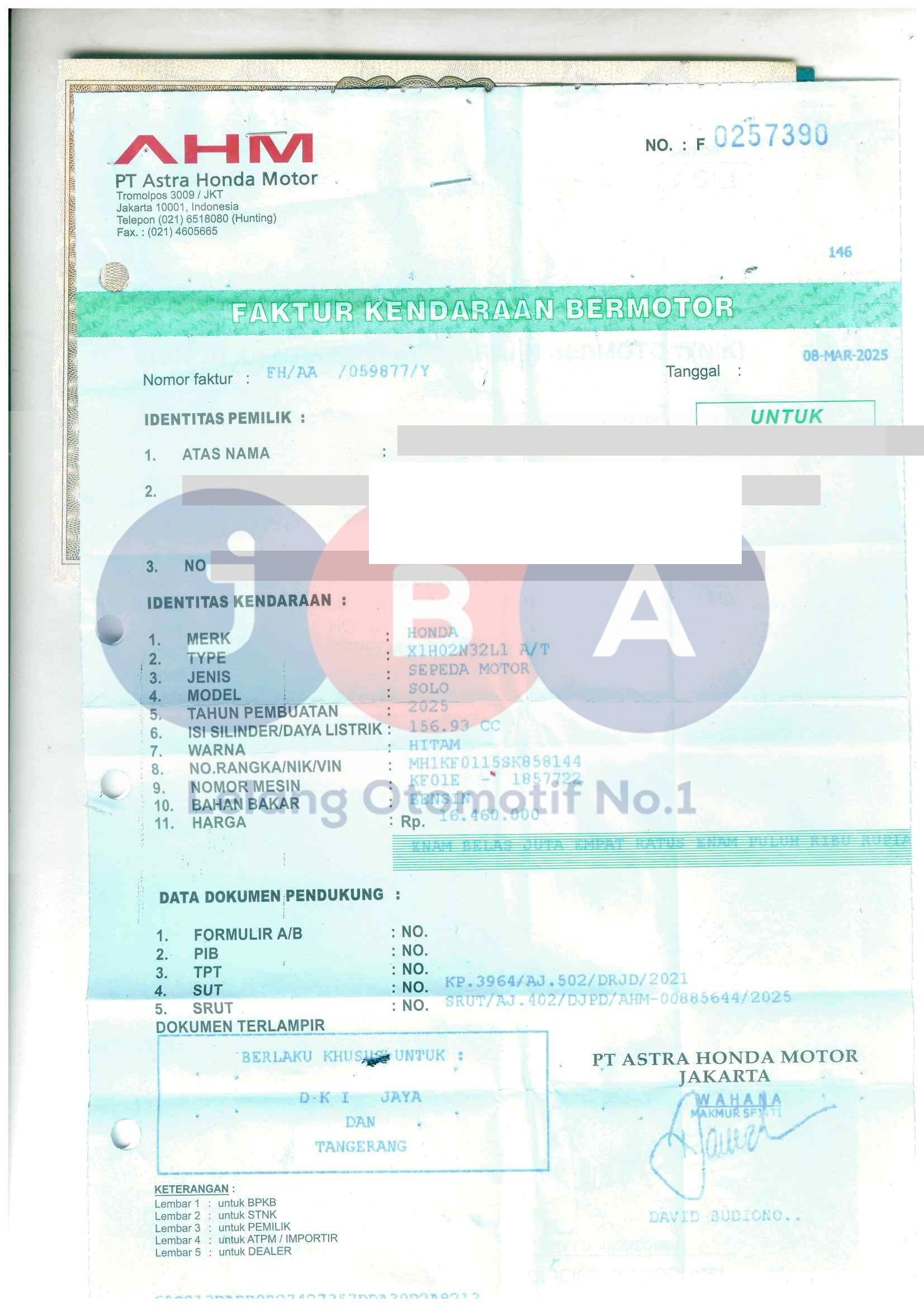 Nomor Rangka